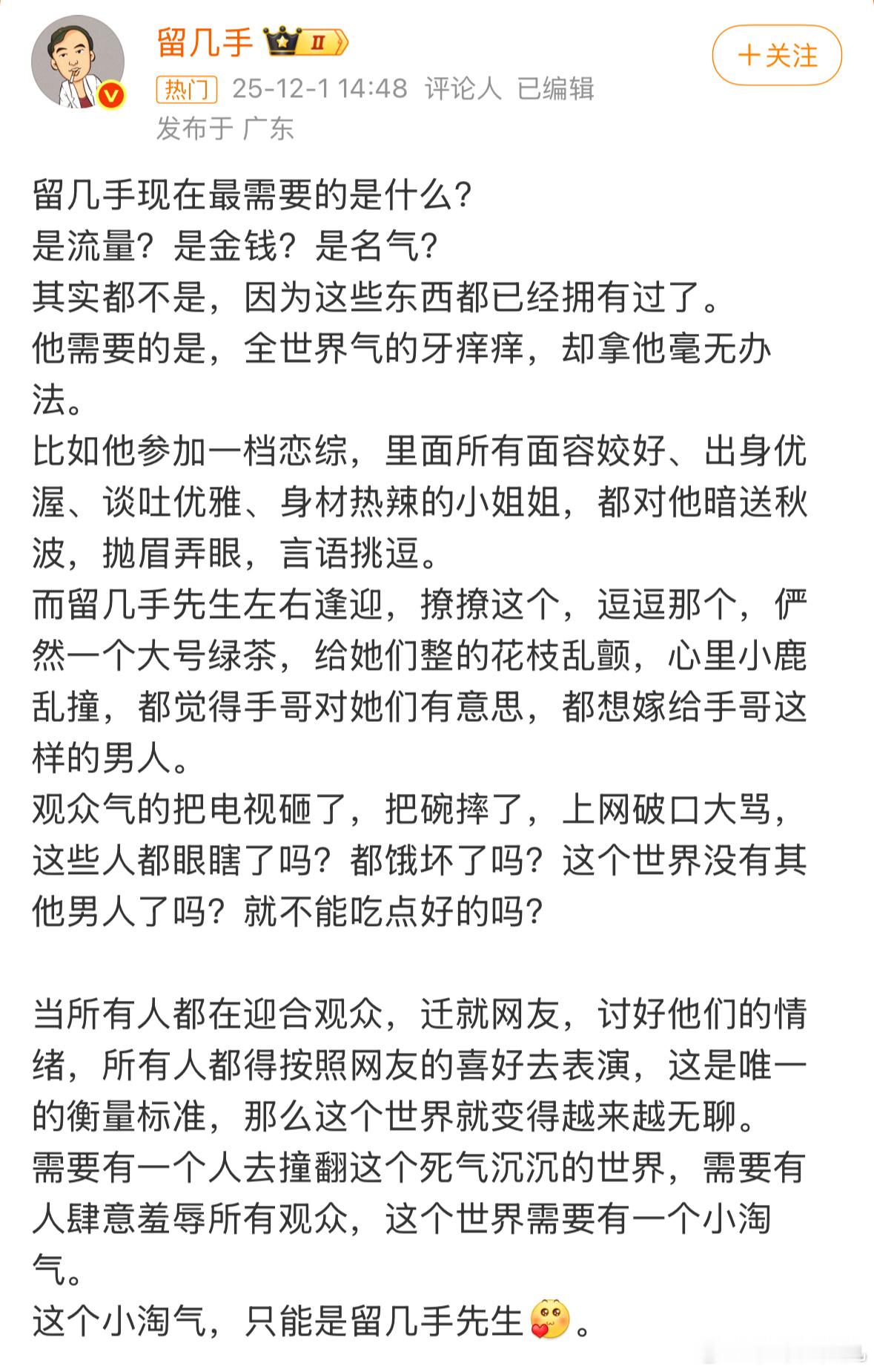 虽然知道葛夕上恋综大概率是个加油团or陪看团之类的角色,但是看到留几手破防发长文也还是很好笑