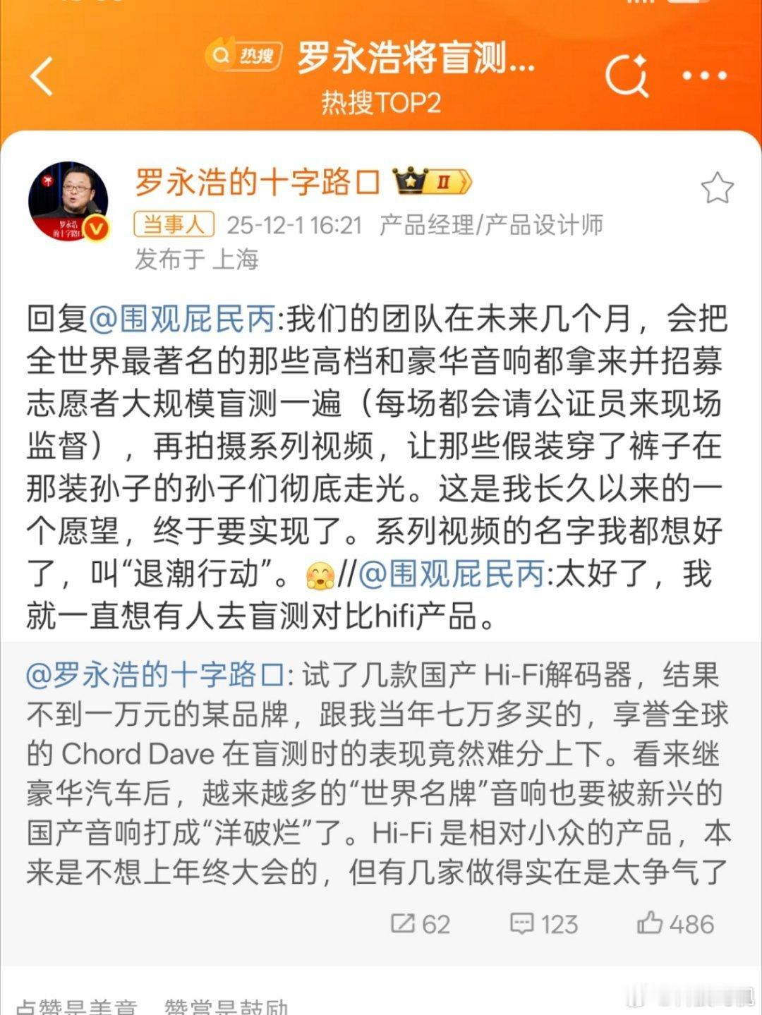罗永浩将盲测高档音响 国产不到一万元的Hi-Fi解码器和七万多的世界名牌差不多?
