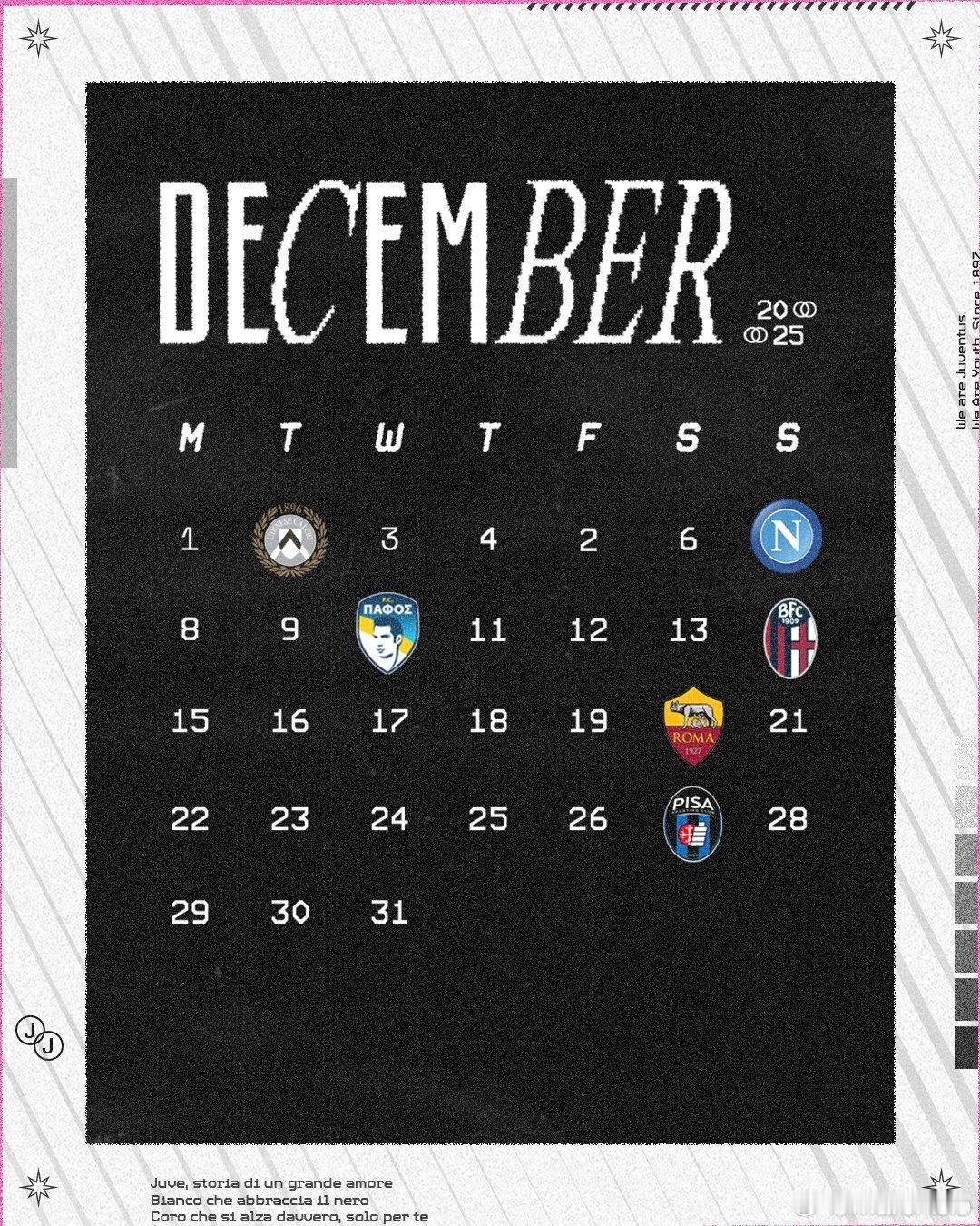 你妇12月的比赛,那不勒斯、博洛尼亚和罗马三大强敌在等着你妇,再加上欧冠的帕福斯,一定要小心了。期待一波3胜3平有没有得搞?尤文图斯意甲联赛欧冠联赛