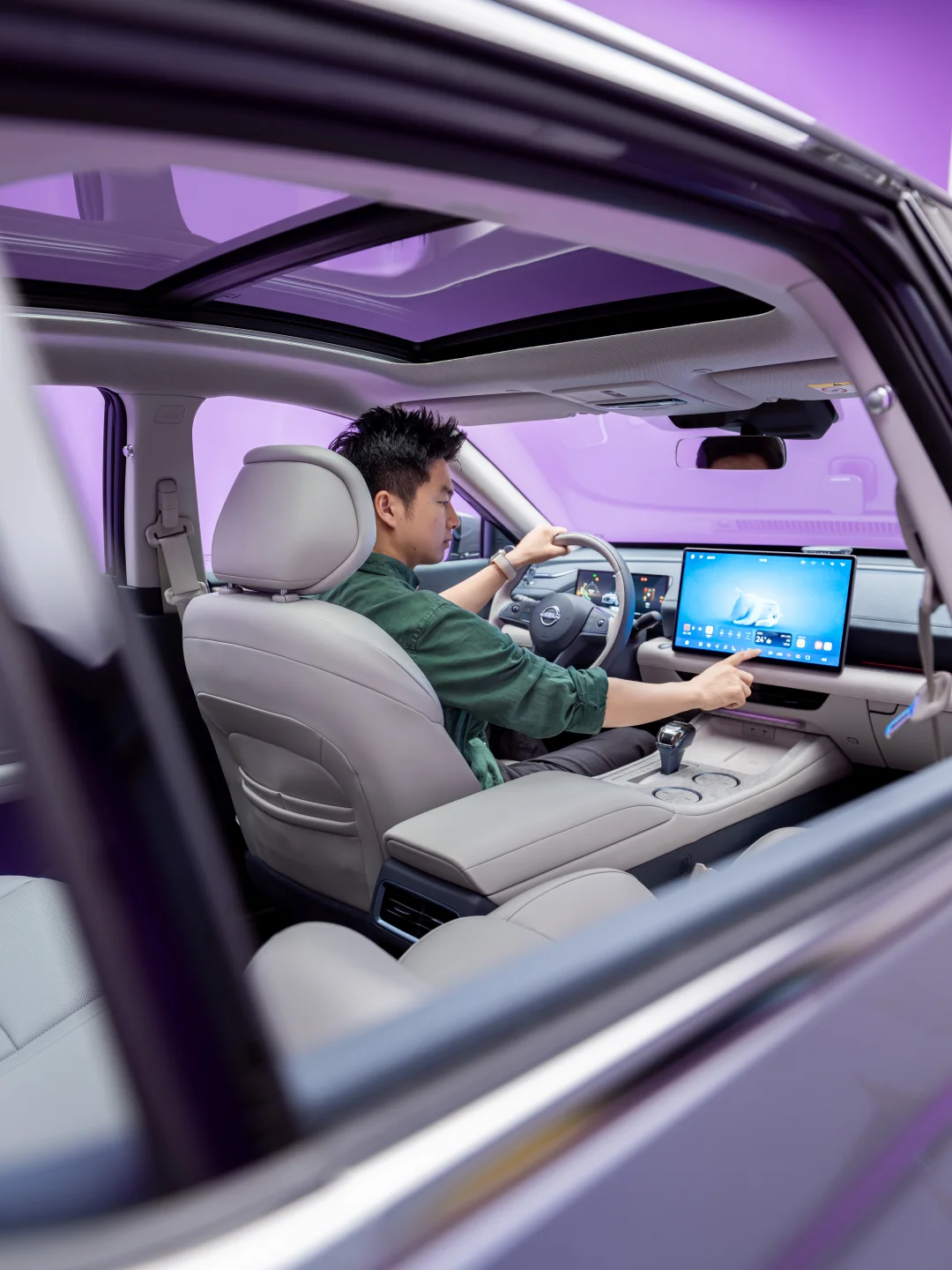 以车身门框、内饰作为前景和框架