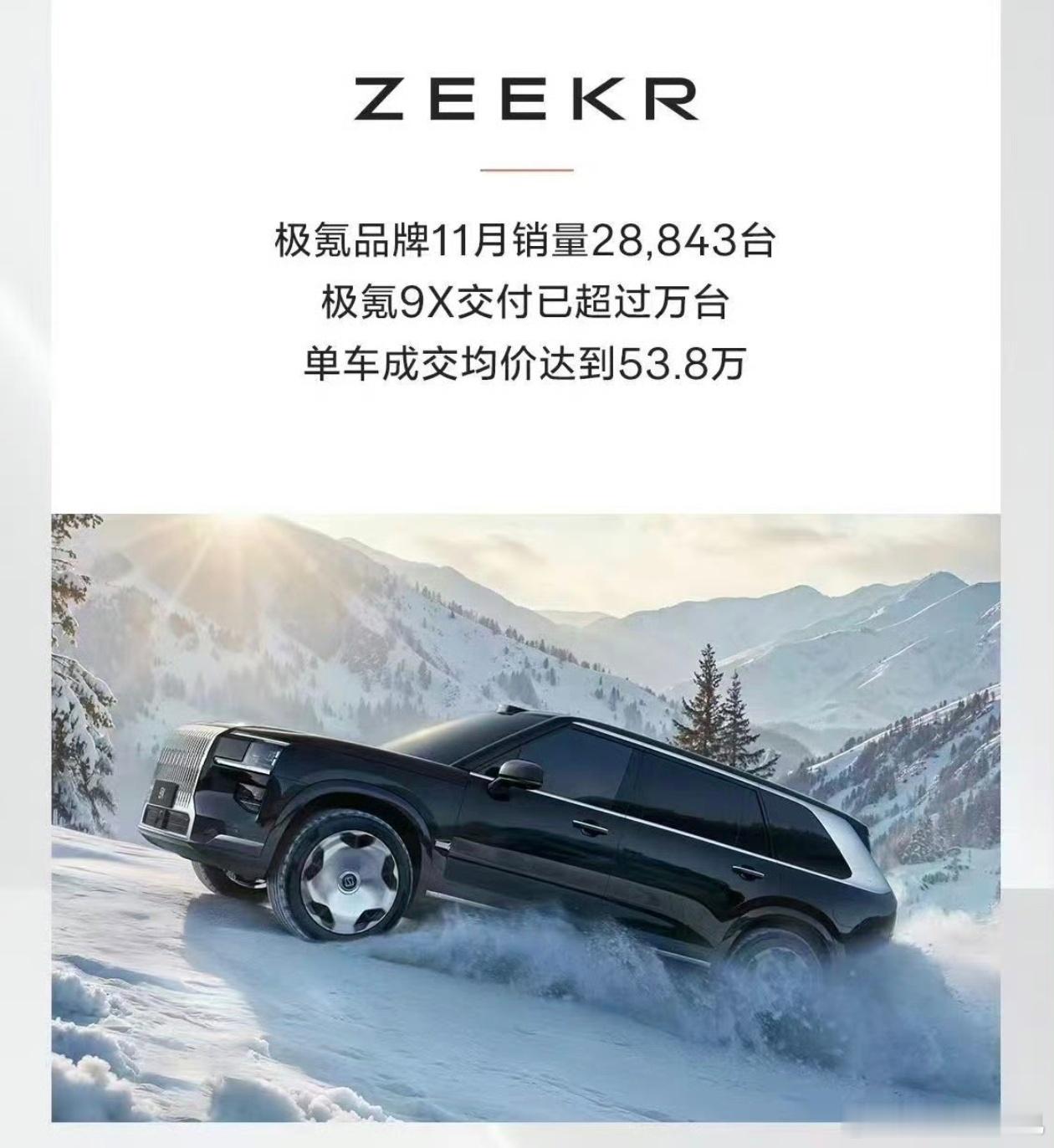 向上的阶段性成果来了,不仅交付量上来,均价也是史诗级提升,达到53.8万,因为其中很大一部分都是交的9x。12月大概还能再交7 8k台hyper,年底再冲一次吧。大v聊车极氪极氪极氪9x