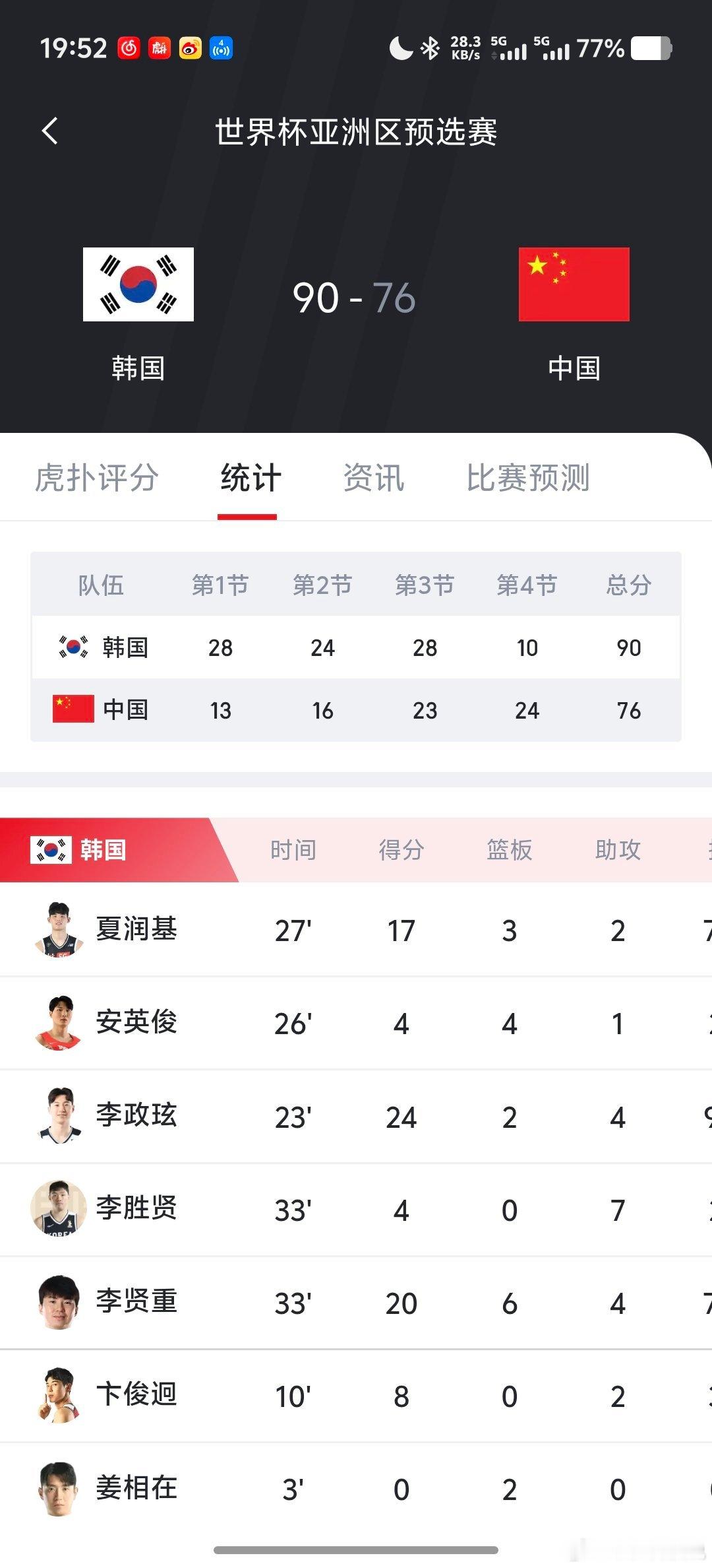 中国男篮vs韩国男篮韩国今天三分确实太准了,被对面射爆了,再接再厉吧!