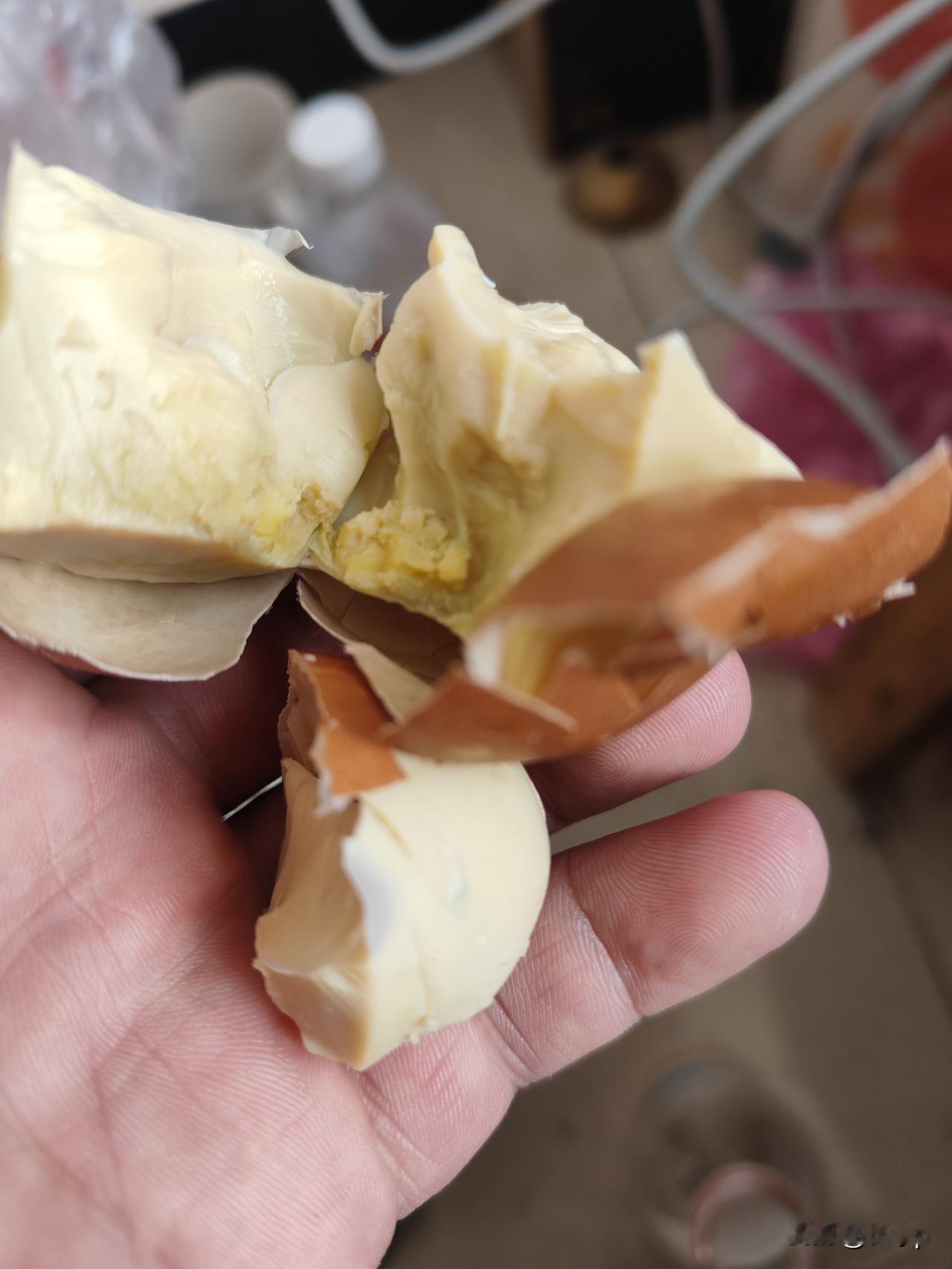 这个不是假鸡蛋,纯粹蛋黄破了,和蛋清混合了