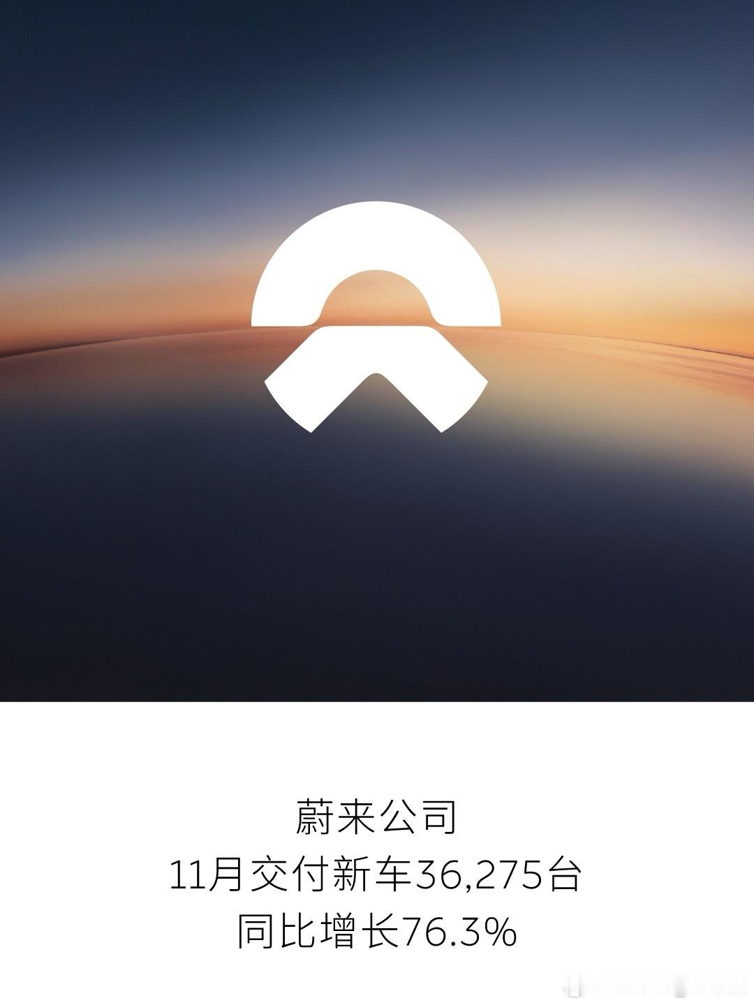 在年底车市“翘尾”行情预期降温的行业环境下,蔚来11月交付新车36,275台,同