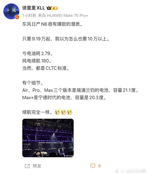 挖槽,抓到犯错一次可真不容易分明顶配宁德时代电池的版本续航要略短几公里,电池容量差0.8度还是有点点影响的谁也不能做到违反物理定律。 日产就很好,不给大家抽盲盒,不同容量也明确标出来不像小米YU7,现在还不给我选择权