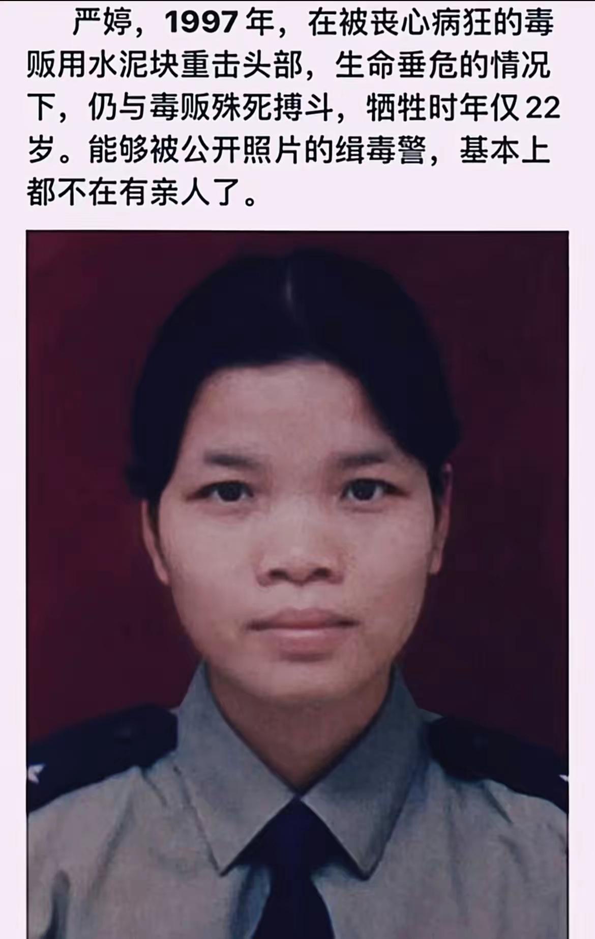 像这种英雄永远活在我们的心中,为国家作出的贡献永远要铭记于心。 严婷,伟大的女英雄。 网友说当她影像公布于众,就意味着她的三代直系亲属都离世了。听到这样的声音,心中难免起波澜。 像严婷这样的缉毒警,牺牲时才23岁周岁,生命伟大又脆弱。 家父兄长和她都是缉毒警,在同一岗位统统牺牲。 致敬~伟大~人民的公仆