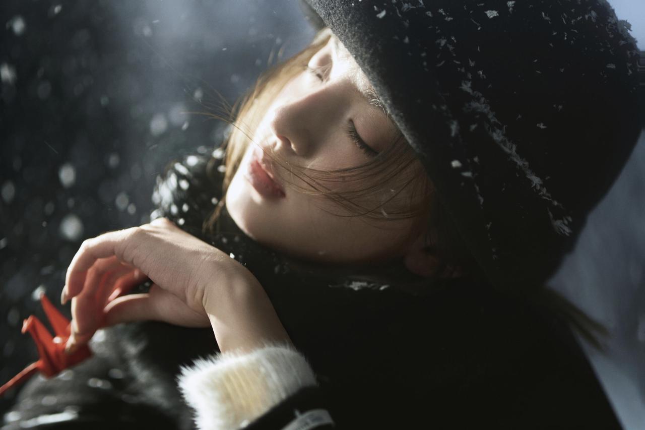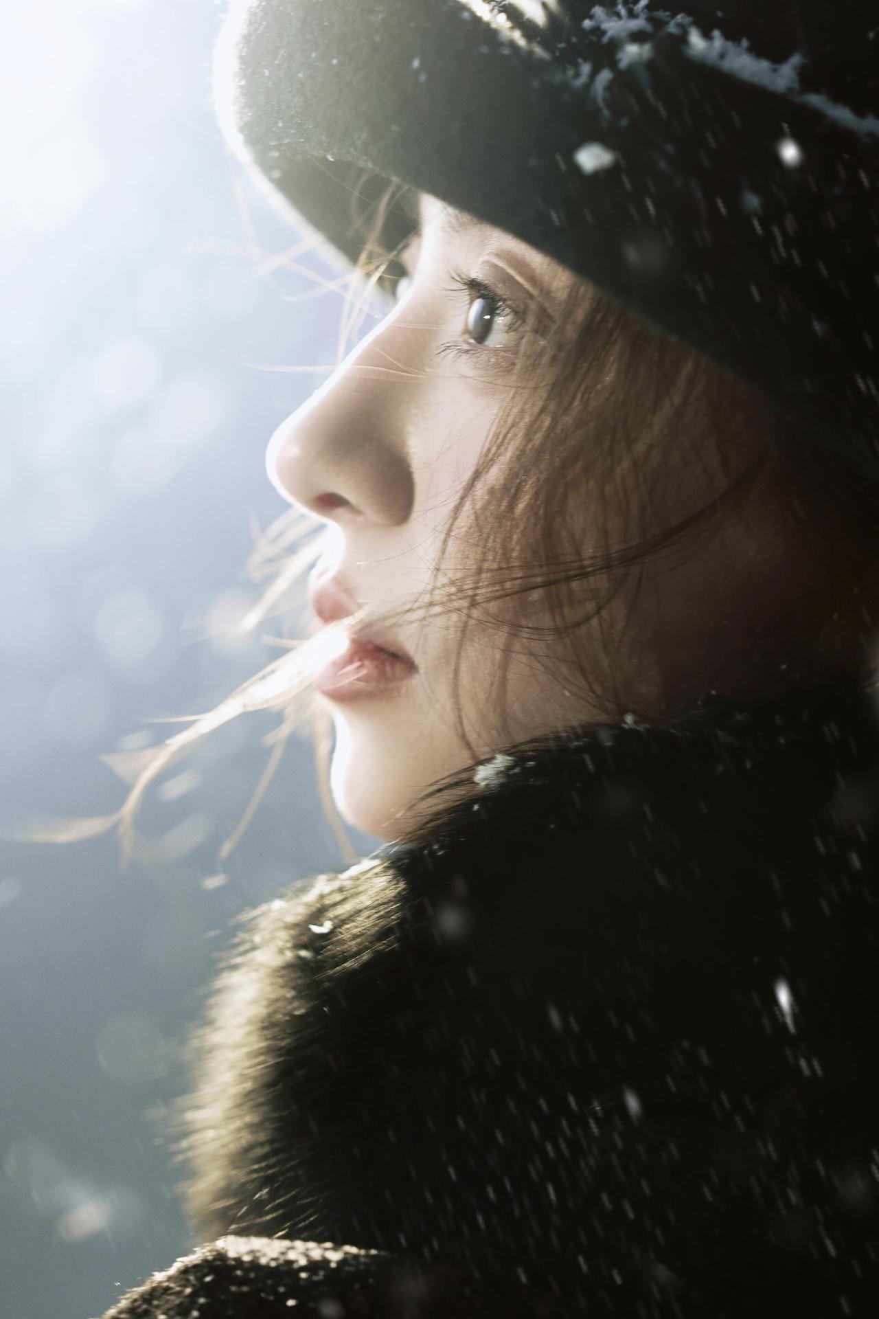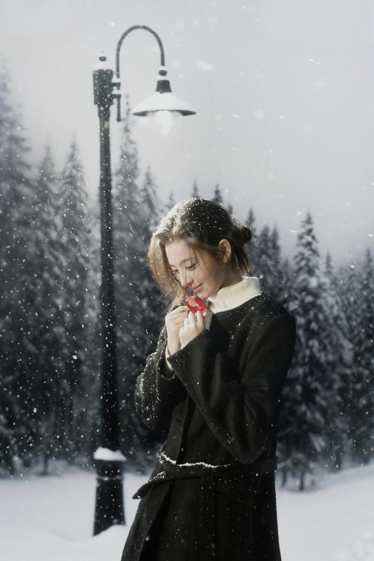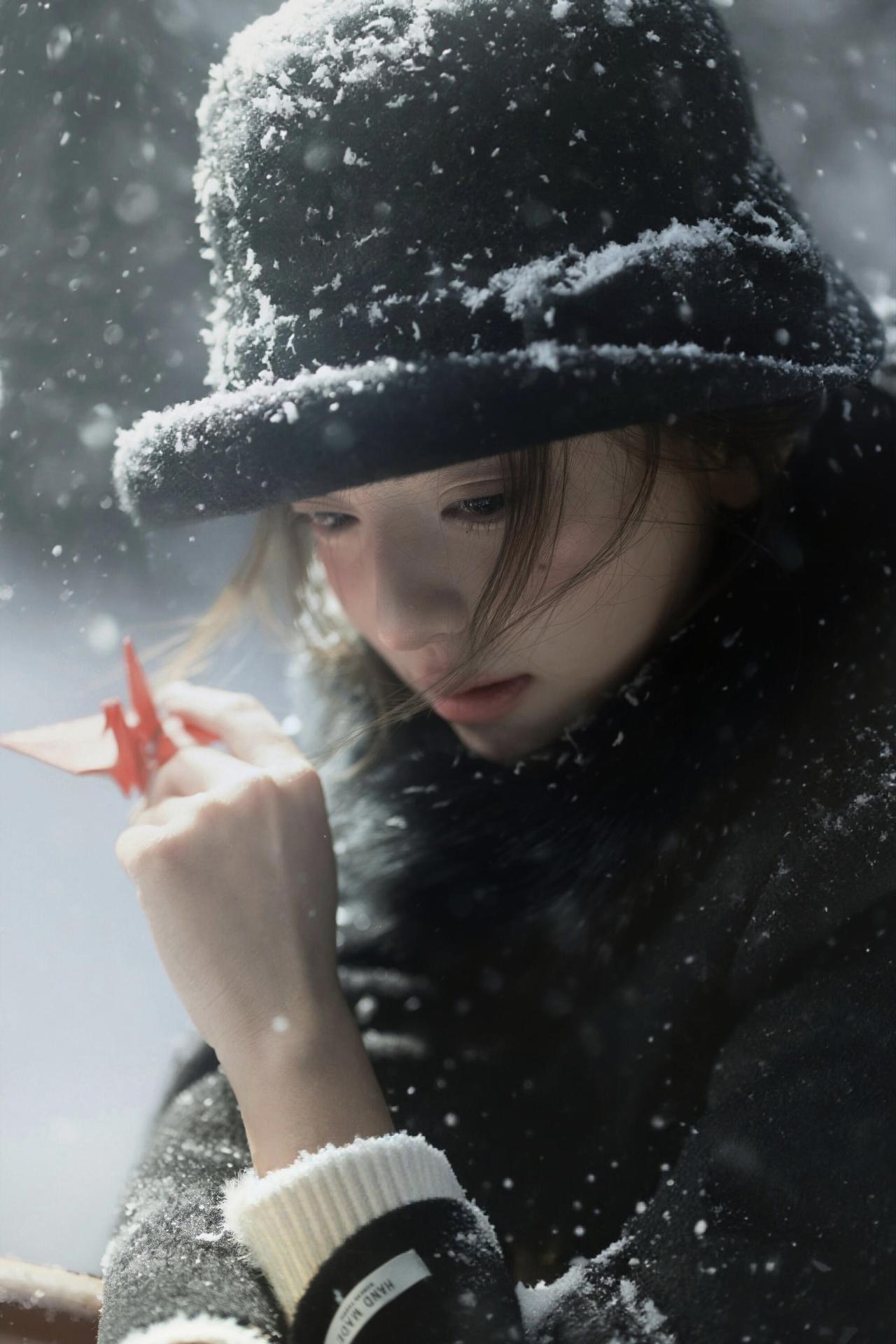 路灯与松林的背景,为这张人像提供了天然的“剧情感容器”。人物低头轻握千纸鹤的动作,与落雪的朦胧感呼应,黑色大衣的垂坠感与雪地的松软形成质感对冲,让画面既有冬日的清冷,又有内敛的温柔。晒图笔记大赛 光线的运用是亮点:路灯的暖光与环境的冷调交织,在人物发丝与衣物边缘形成柔和的光晕,既突出了主体,又不破坏雪景的静谧。不足在于背景的松林稍显杂乱,若用浅景深进一步虚化,会让人物与核心道具的焦点更集中。