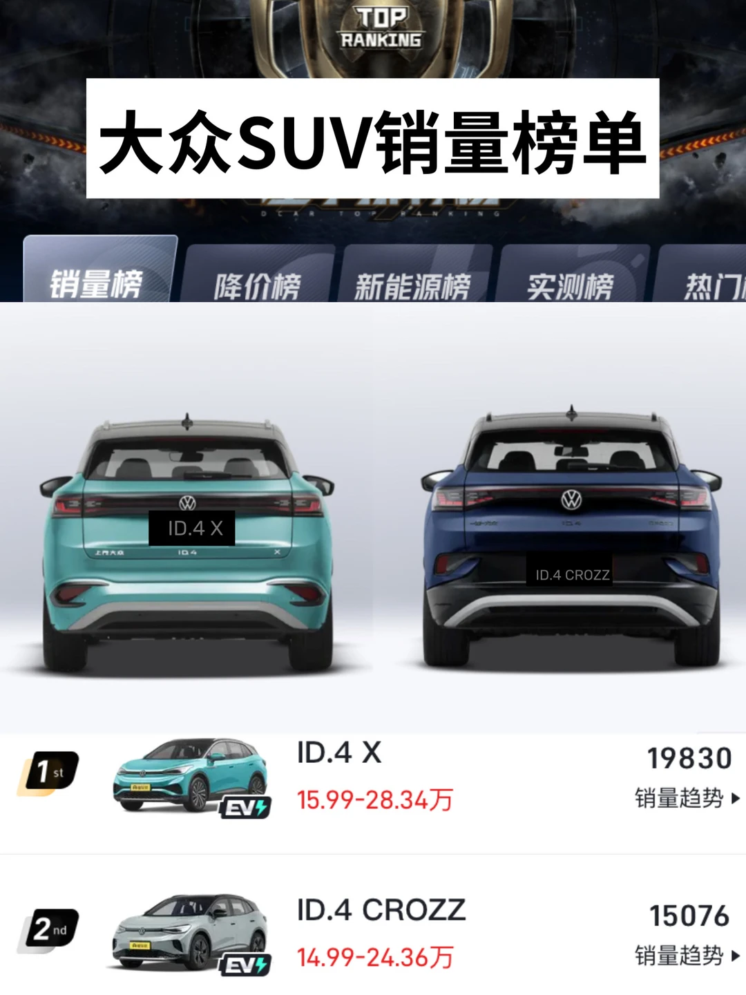 📈买车嘛,销量是个很重要的参考指标。看看最近半年的数据,上汽大众ID.4 X销量达到了19830辆,而一汽大众ID.4 CROZZ销量为15076辆。很明显,ID.4 X的销量比ID.4 CROZZ更高。群众的眼睛是雪亮的,那为啥ID.4 X受欢迎,咱们来仔细分析分析。
