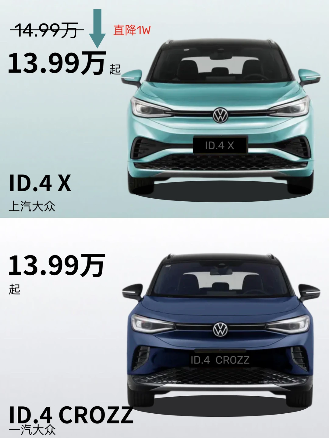 🚗最近,汽车市场可热闹了,上汽大众ID.4 X和一汽大众ID.4 CROZZ这两款车陷入了价格战。一汽大众ID.4 CROZZ率先降价,上汽大众ID.4 X立刻跟进,这一降,两款车价格直接打平了!不过,价格一样了,咱该咋选呢?