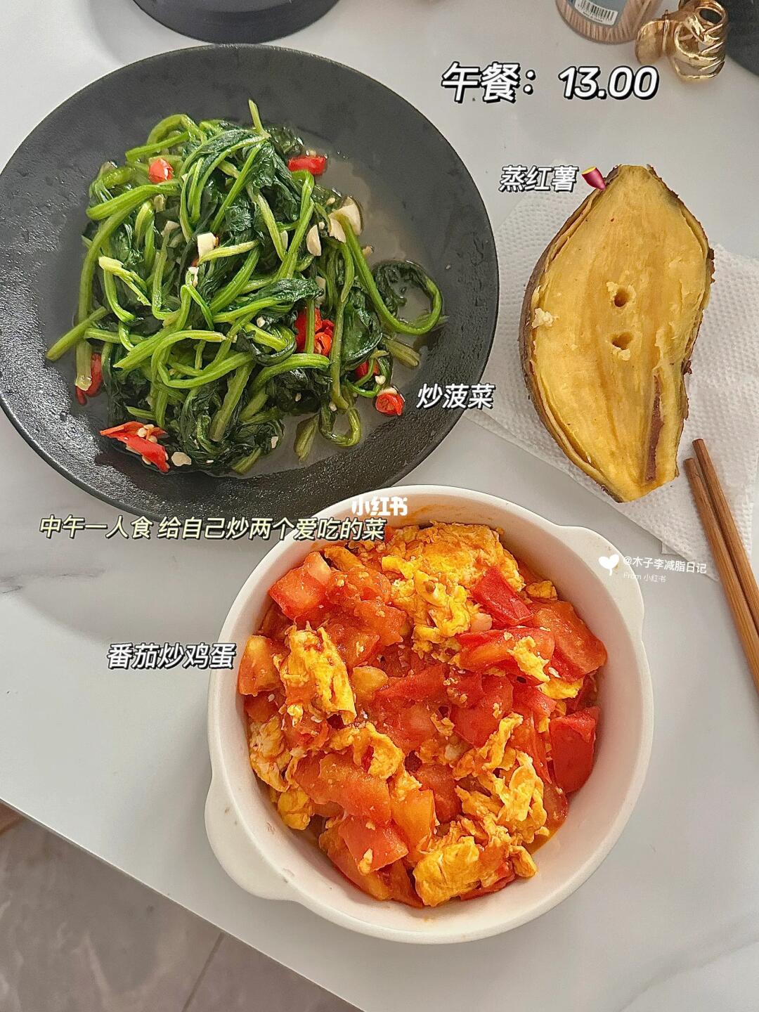 🥣午:番茄炒蛋 | 炒菠菜 | 蒸红薯