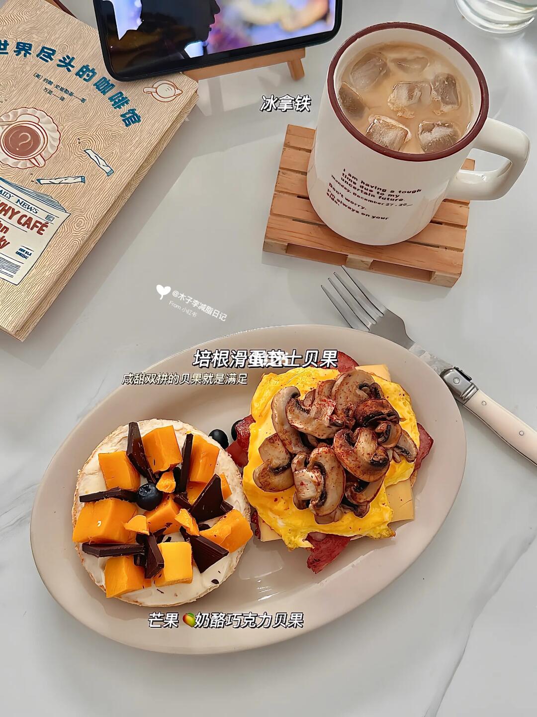 🥣早:咸甜贝果 | 冰拿铁 | 巧克力🍫