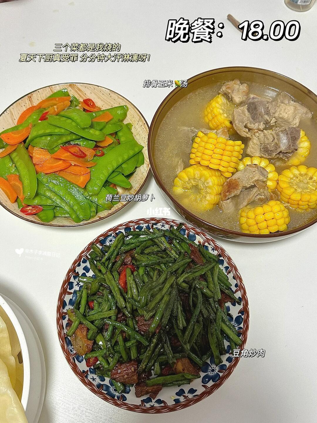 ▪️初始体重:120斤 ▪️现重:91.4斤 ▪️已➖29斤 - 🥣早:玉米🌽 | 冰拿铁 | 猕猴桃🥝 | 蓝莓 | 鸡肉肠 | 鸡蛋 | 树莓 🥣午:绿豆南瓜汤 | 豆浆焖面 🥣晚:玉米排骨汤 | 荷兰豆炒胡萝卜 | 豆角炒肉 🥣加:葡萄 🏋️运动:🈚 💧喝水2000ml - 📝自家种的玉米🌽就是好吃呀!软糯香甜,现在正嫩的时候一口都爆浆的感觉~ 📝天热中午实在不想吃饭了,就熬了绿豆南瓜汤还真不错哦~外甥女做的焖面夸夸👍🏻她全能呀~ 好好吃饭,少熬夜,多喝水,多吃蔬菜水果!