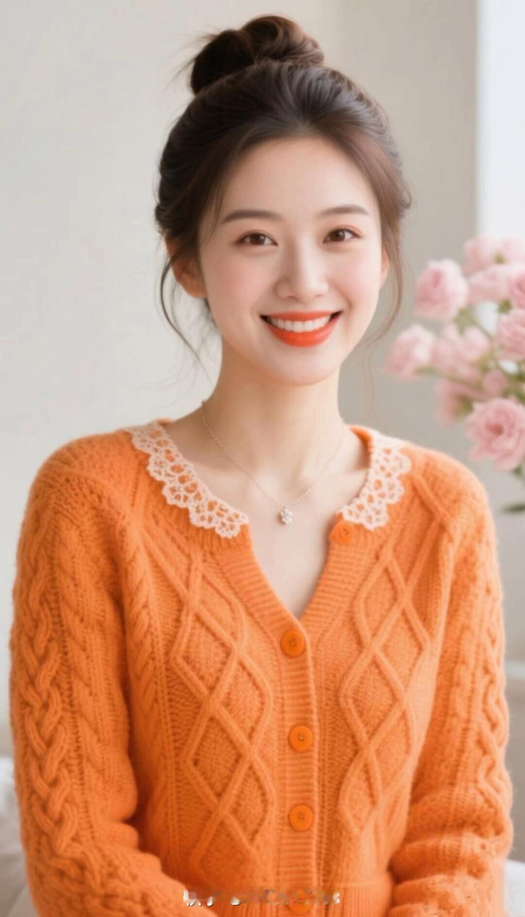 温暖橙色调毛衣,甜美笑容,元气满满的一天!🌟💖