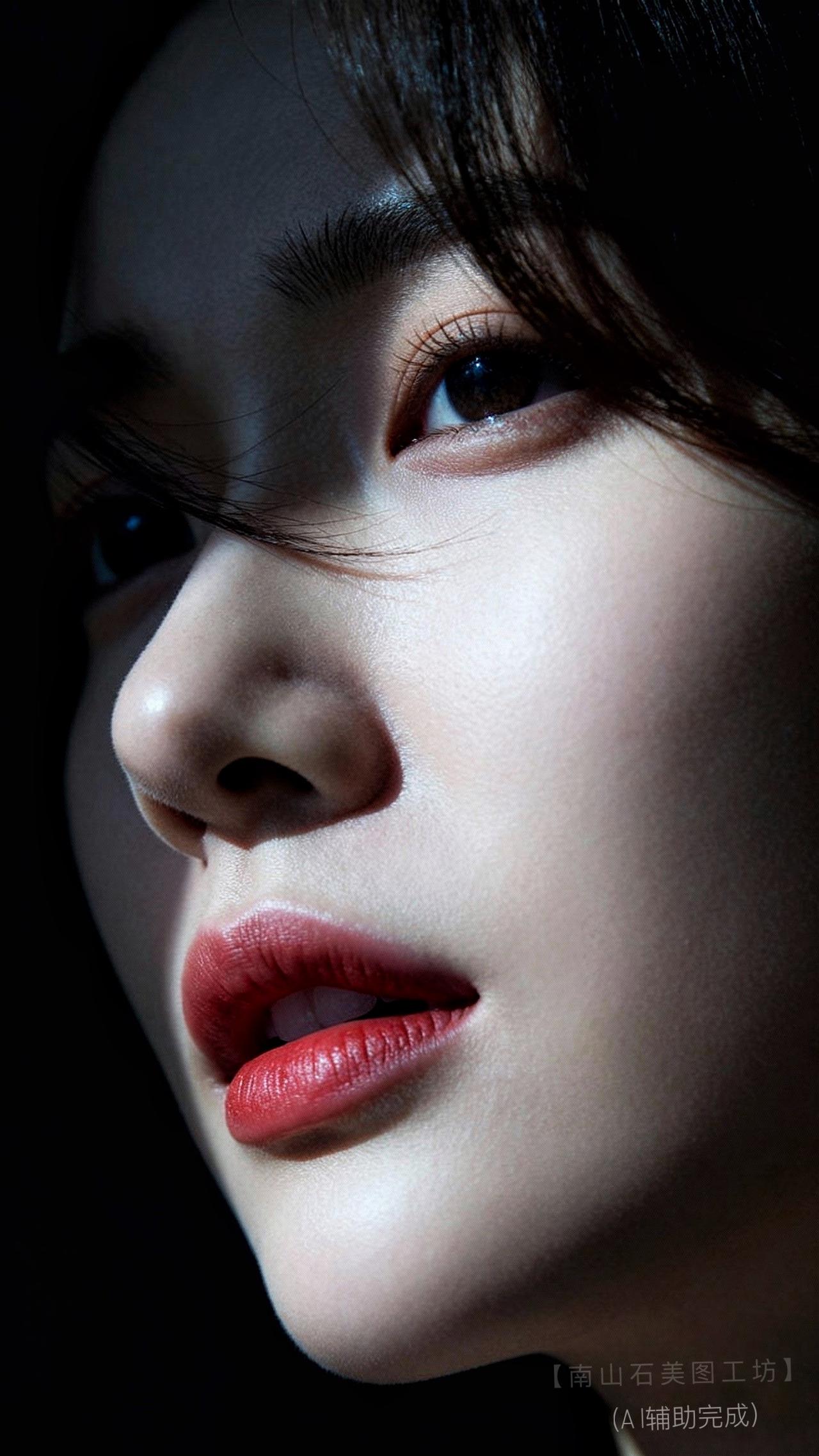 暗调光影如墨绘,雕琢她锋利下颌与明艳红唇。睫羽垂落藏星,发丝似风抚过,冷艳与温柔在轮廓间交响,明暗交织出艺术质感,一眼沦陷这高级氛围里的灵动与矜贵,每寸都迸发致命吸引力。