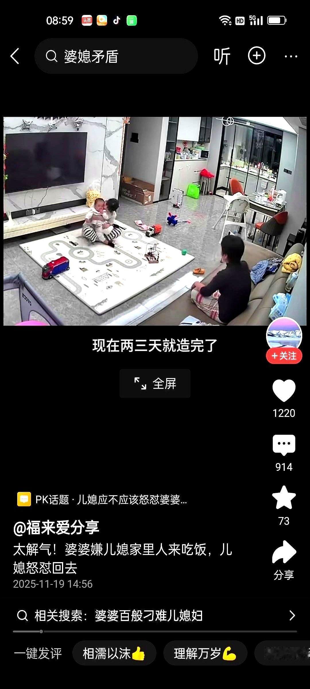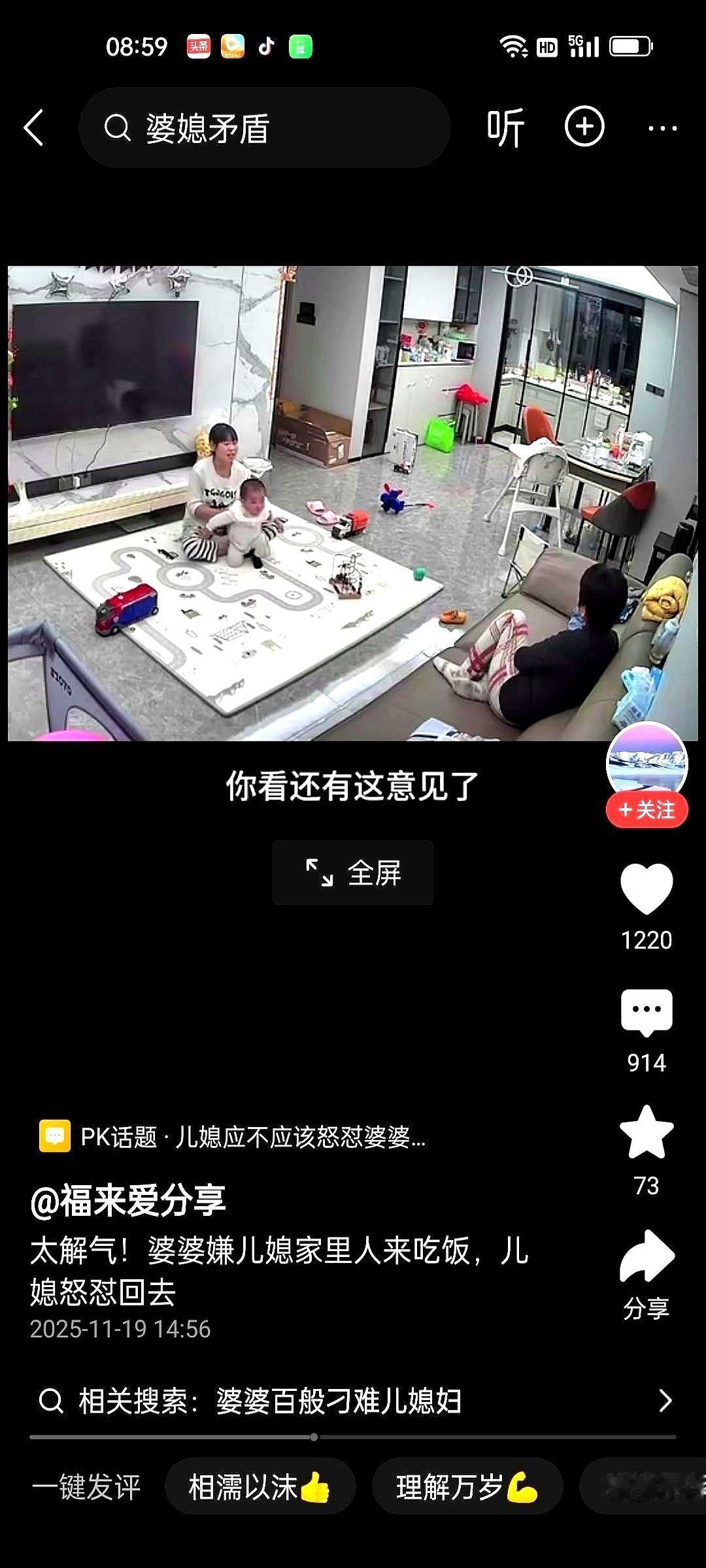 “你儿子要是没结婚,你现在就把他领走。” 我跟你说,这话一出来,对面那位婆婆的脸,估计当场就挂不住了。 事情很简单。 儿媳妇娘家人过来住了几天,冰箱吃空了点。 婆婆心里不舒坦,敲打了一句:“这是我家,菜都快被吃光了。” 听听这潜台词。 “我儿子的家=我的家。你,包括你全家,都是外人。” 结果这儿媳妇是个狠角色,根本不跟你绕,直接掀桌子。 一句话,就把那个“我家”的归属权,给你掰扯得明明白白。 杀人诛心,不过如此。 其实这种事,哪是为了一冰箱的菜啊。 这就是一场不动声色的“主权”战争。 太多长辈一辈子都没想明白一个道理: 你儿子成立新家的那天起,你和他那个小家庭的关系,就变了。 你从绝对的“主人”,变成了“最重要的亲戚”。 你可以是永远的后盾,是温暖的港湾,但你不再有资格对那个家的内政指手画脚。 那个家的女主人,已经换人了。 这个身份的转变,我知道,很难。 像把自己一辈子的心血,亲手交出去。会失落,会不甘。 可再难,也得自己体面地完成交接。 非要等着人家小夫妻用最难听的话,来给你上一堂关于“界限感”的必修课, 那滋味,可真不好受。 到头来,伤了和气,也丢了作为长辈最后的尊严。 何苦呢。