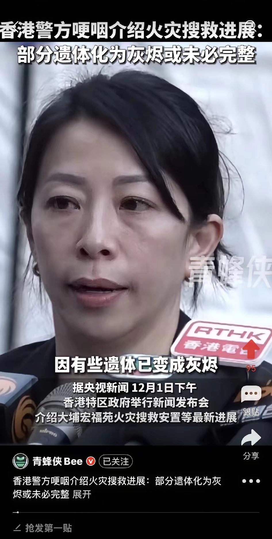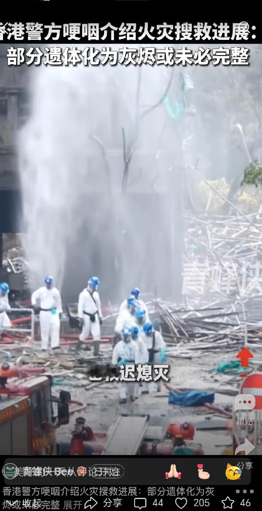 女警员哽咽的瞬间,才懂香港宏福苑大火有多残忍!151条生命定格在烈焰中,部分遗体