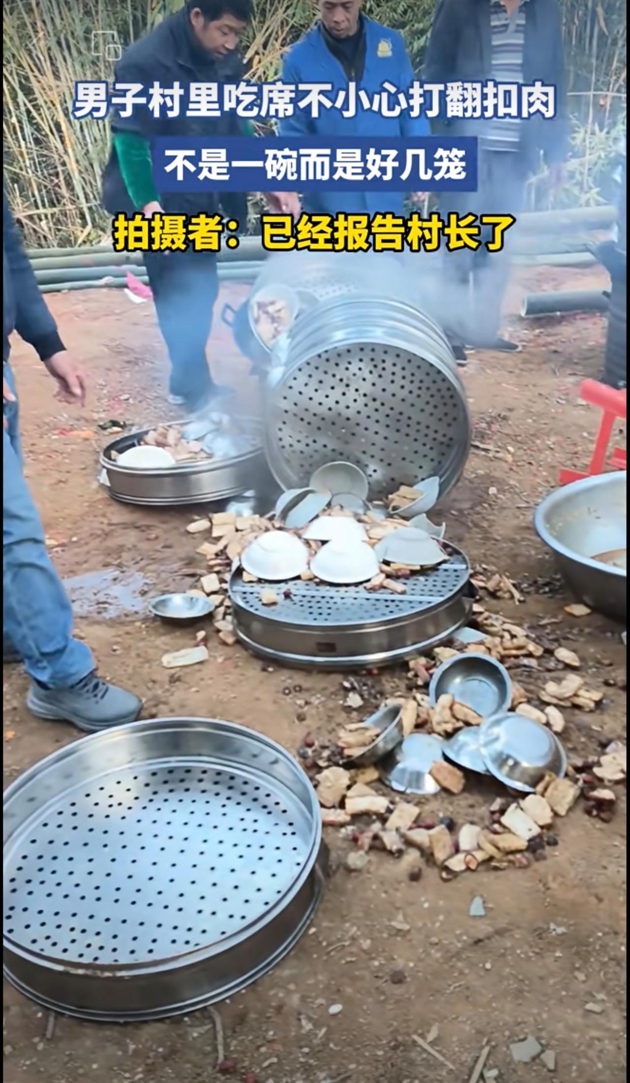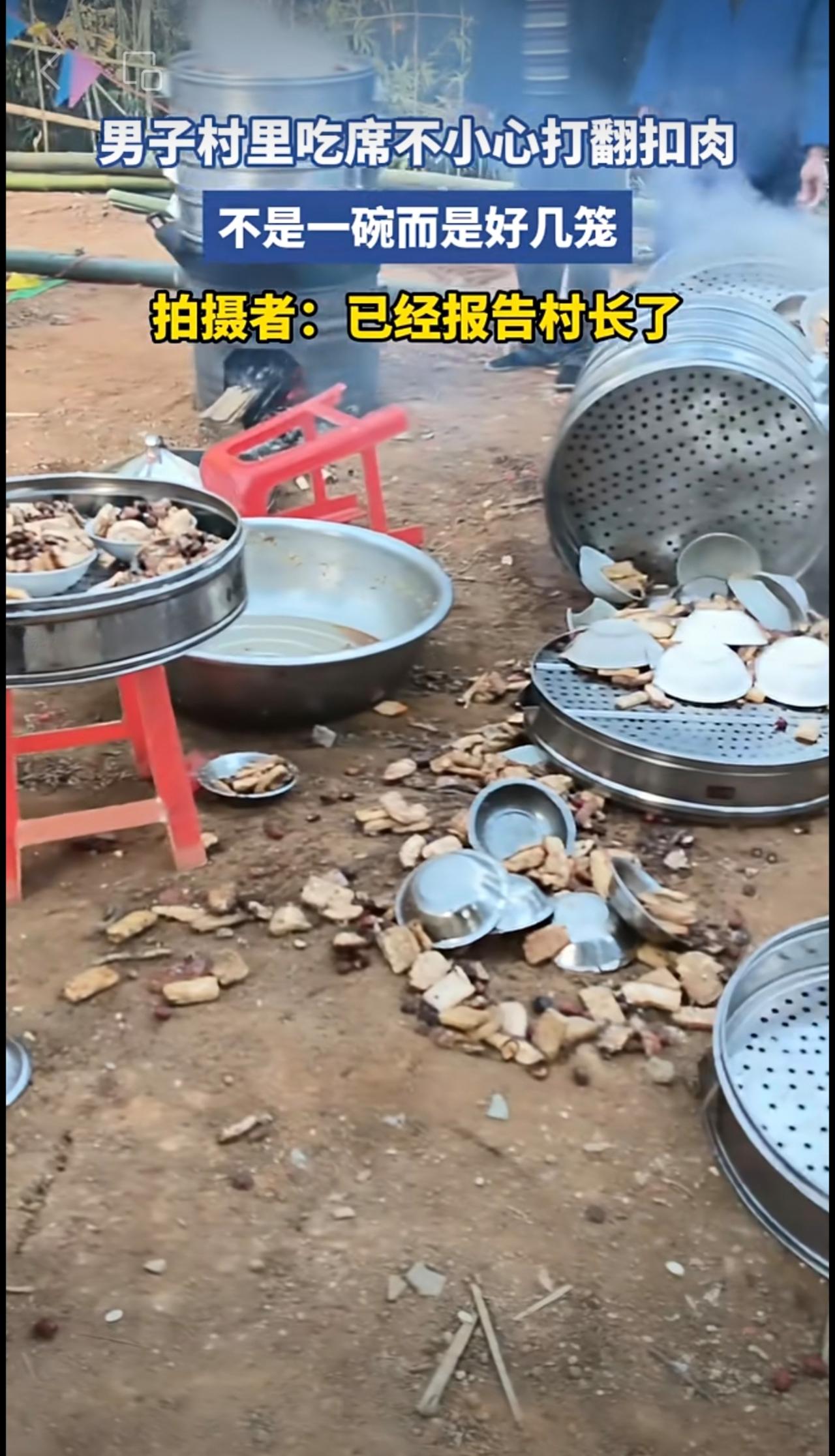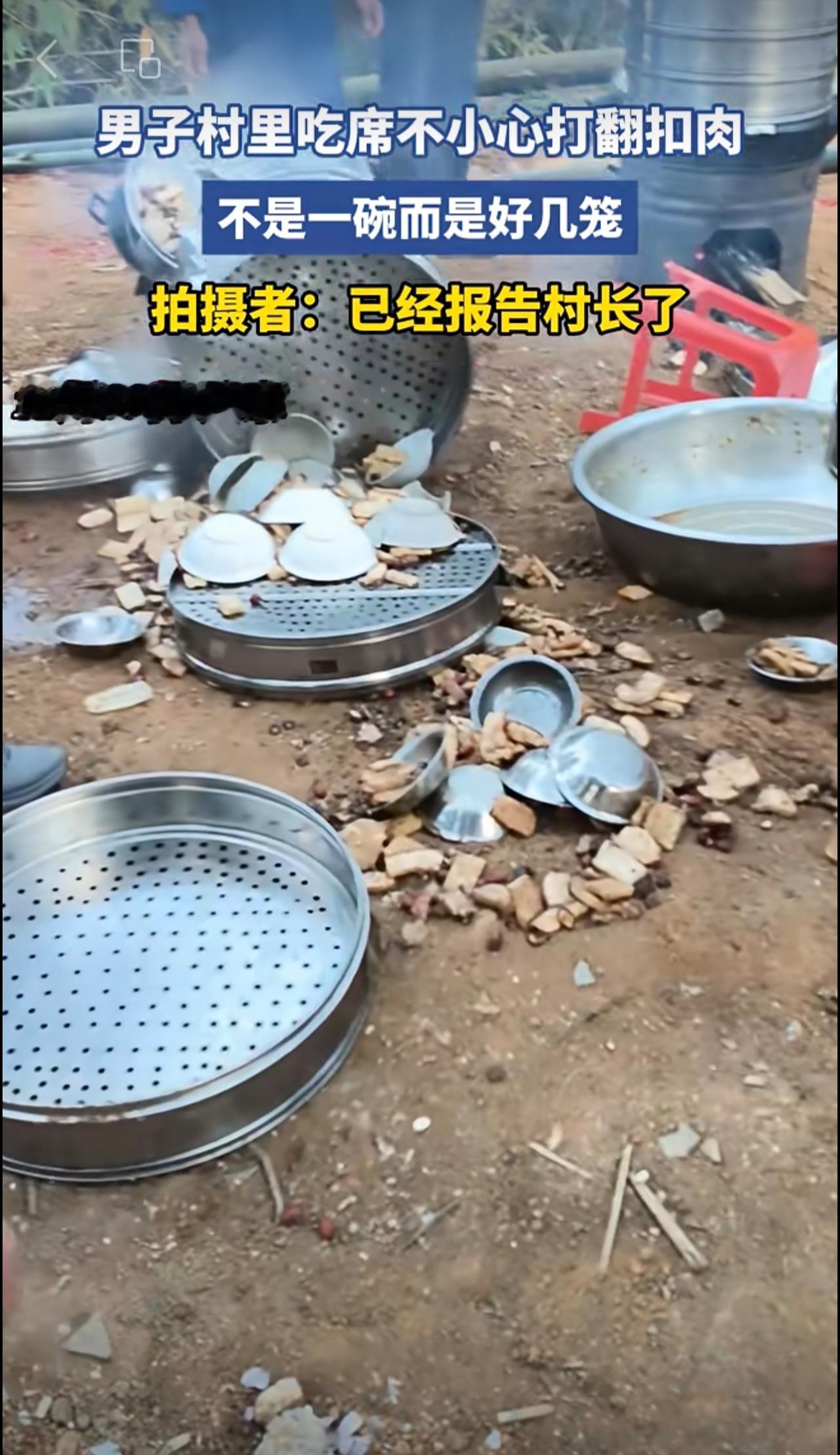 男子村里吃席不小心打翻扣肉[流泪]