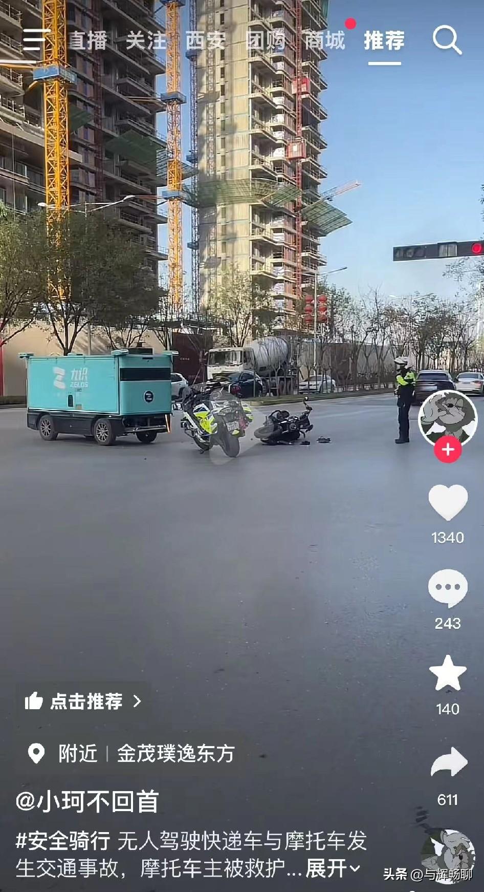 大家见过吗?遇到这种无人快递车和摩托车发生交通事故的情况,应该咋处理?随着近两年路上无人快递车越来越多,它可能已经影响到了我们正常的交通,虽然现阶段技术已经很成熟,但也难免会出问题,如何解决这个问题,我们需要更多的思考。送外卖事故 无人驾驶快递车 无人物流配送车 智能快递无人车 快递无人车 无人车快递配送 无人派送车