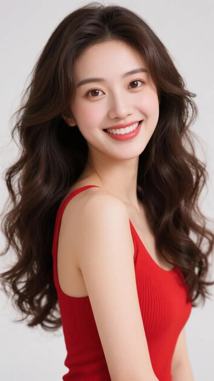 这姐姐长得真让人移不开眼!黑色短发衬得脸蛋又圆又精致,眼睛亮得像星星,笑起来特别
