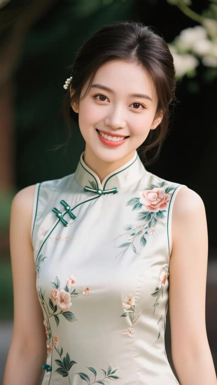 温柔甜美的微笑,优雅的白纱连衣裙,散发着迷人的魅力。