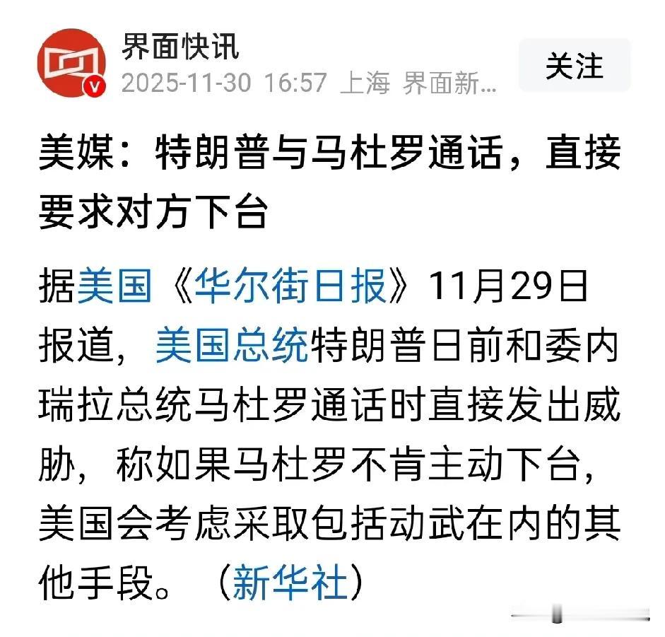 希望马杜罗坚持到底,千万不要当逃兵 有委内瑞拉大多数人的支持,马杜罗怕什么 面对特朗普的无理要求,应该坚决怼回去才对 作为多年以来的抗美硬汉,马杜罗应该坚持到底,绝对不要当逃兵 要么轰轰烈烈的顽抗到底,就算是死, 也要死在委内瑞拉才对 如果灰溜溜的到海外去流亡求生,那简直是在打马杜罗支持者脸 箭在弦上,不得不发,希望马杜罗血战到底,以死明志才对