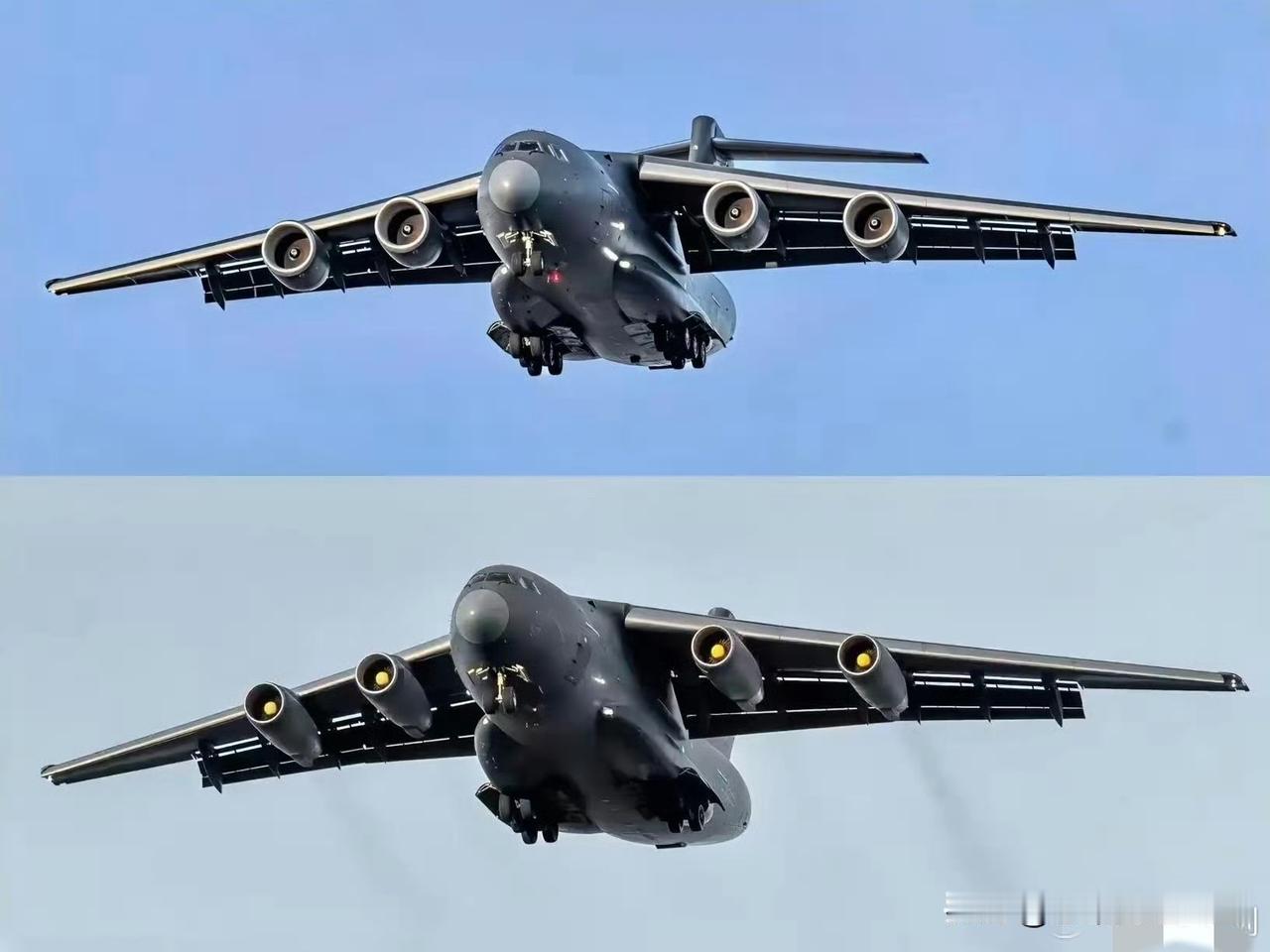 咱们的国产大型运输机运-20A和运-20B同角度对比[大金牙][大金牙][大金牙] 从正面看过去,由于换装了国产涡扇-20大涵道比发动机,俗称“大酒桶”,咱们的运-20B看着比老款细长发动机威武霸气多了。 而大酒桶发动机带来的另外一个好处是,最大起飞重量飙升至220吨,载重突破66吨,可轻轻松松拉载一辆99A主战坦克。[赞][赞][赞] 运-20B