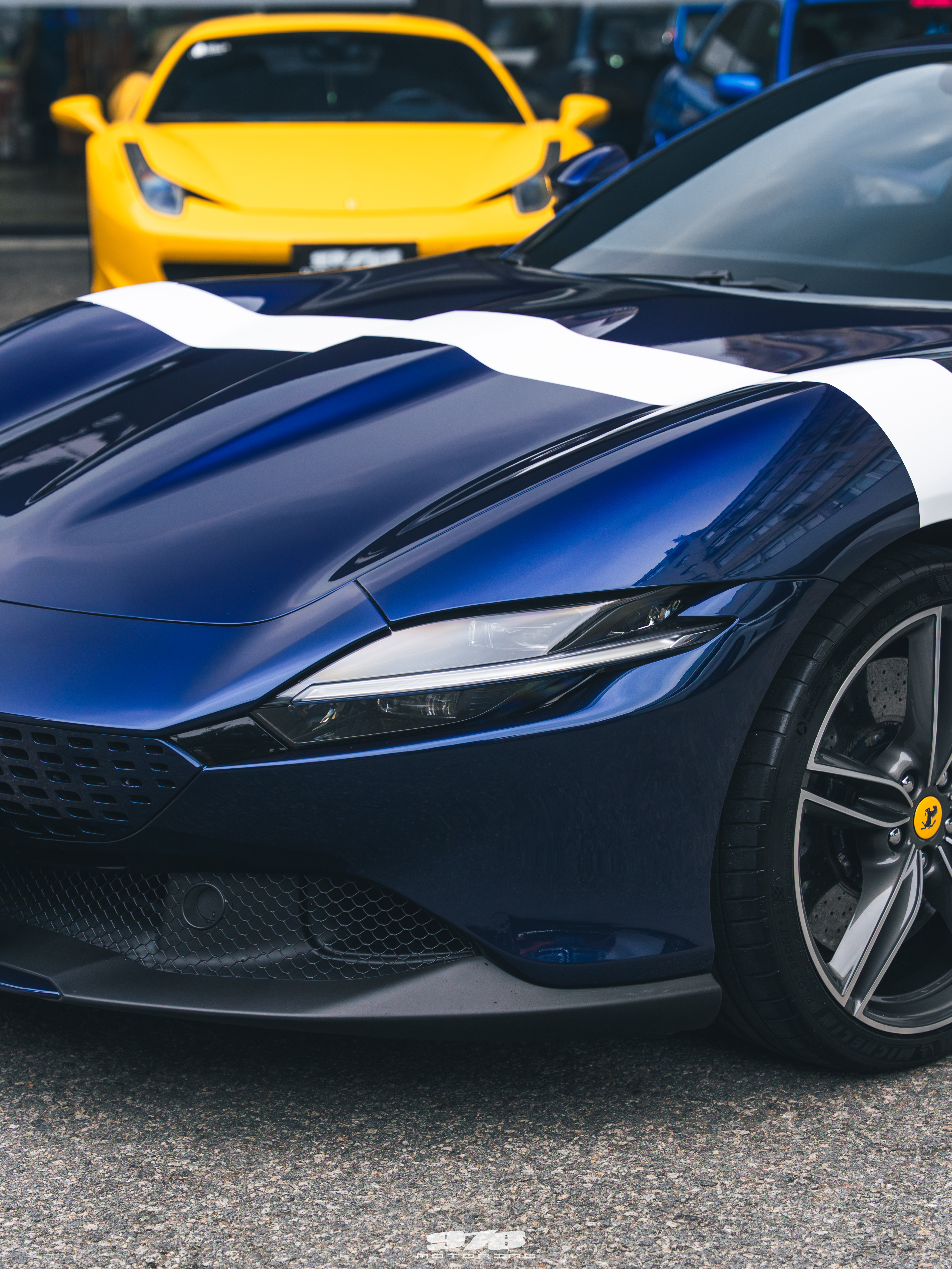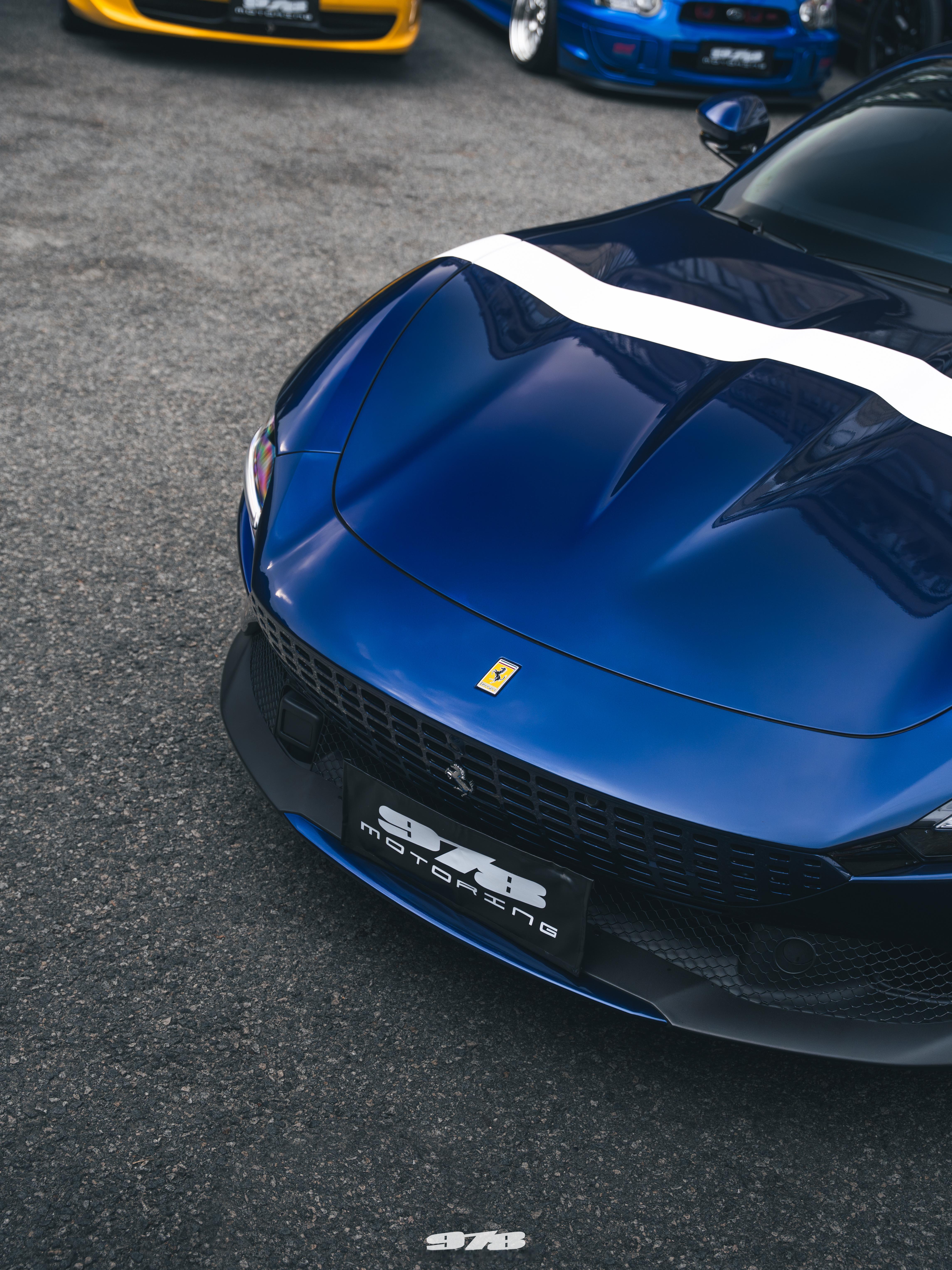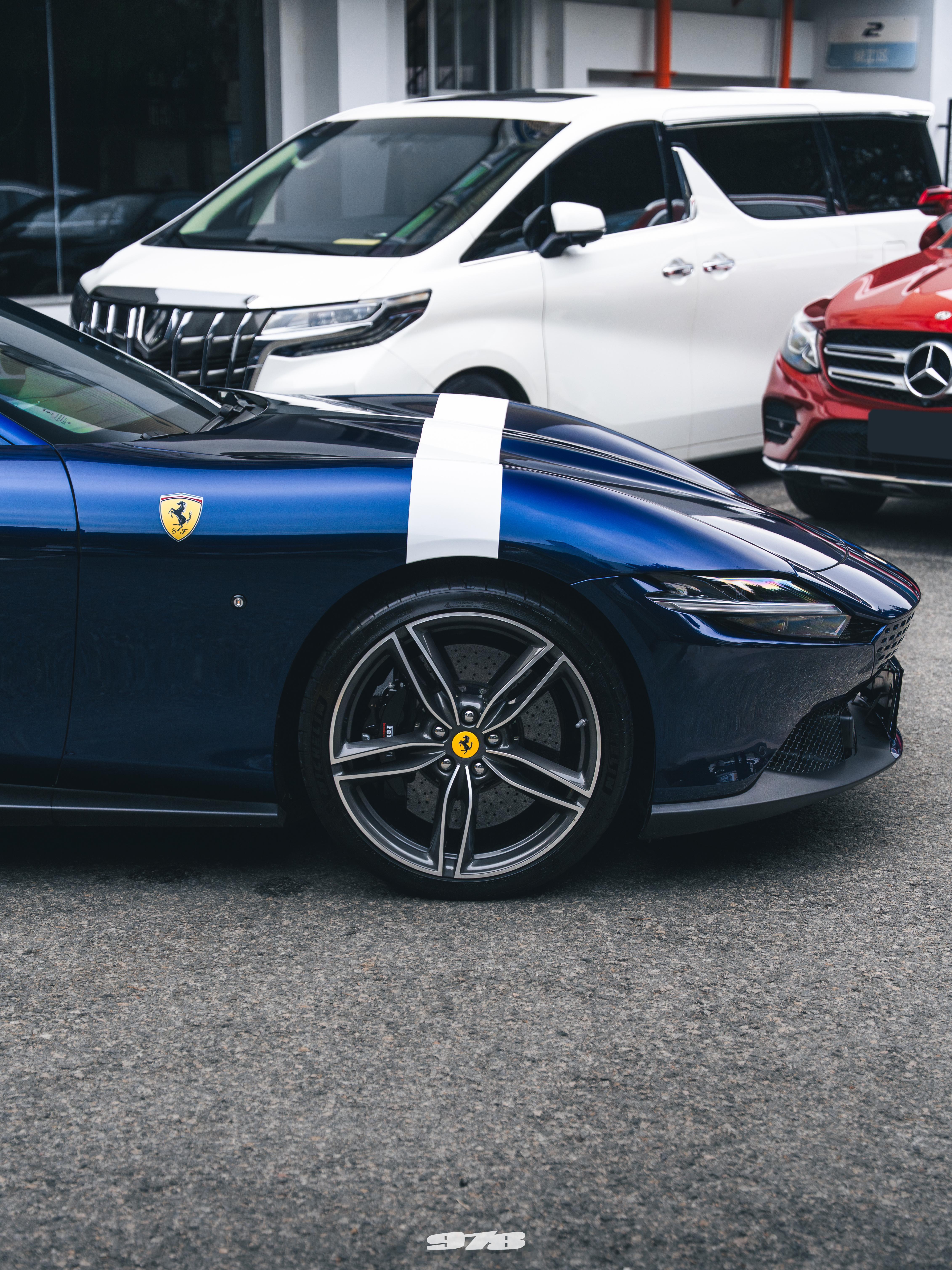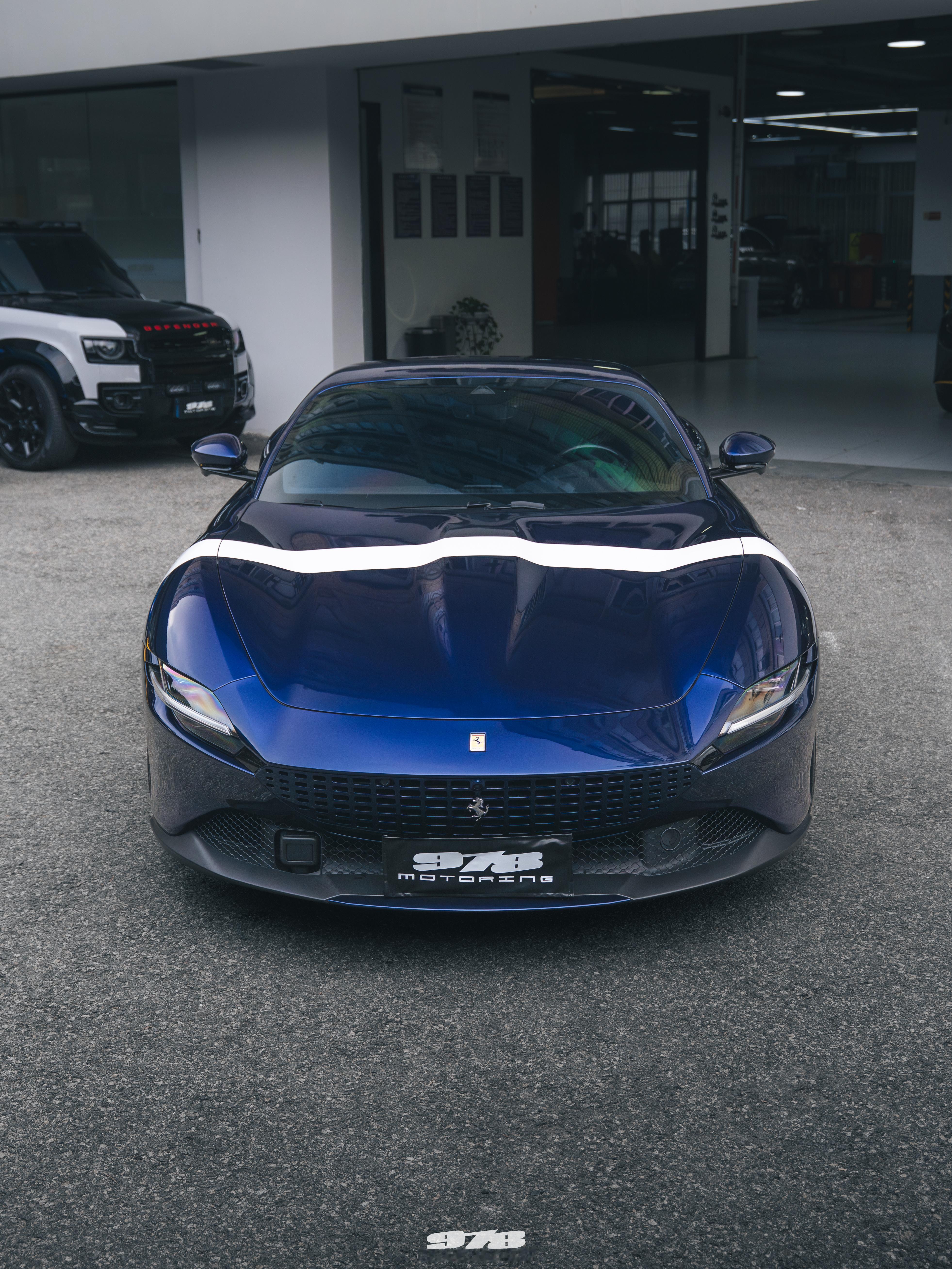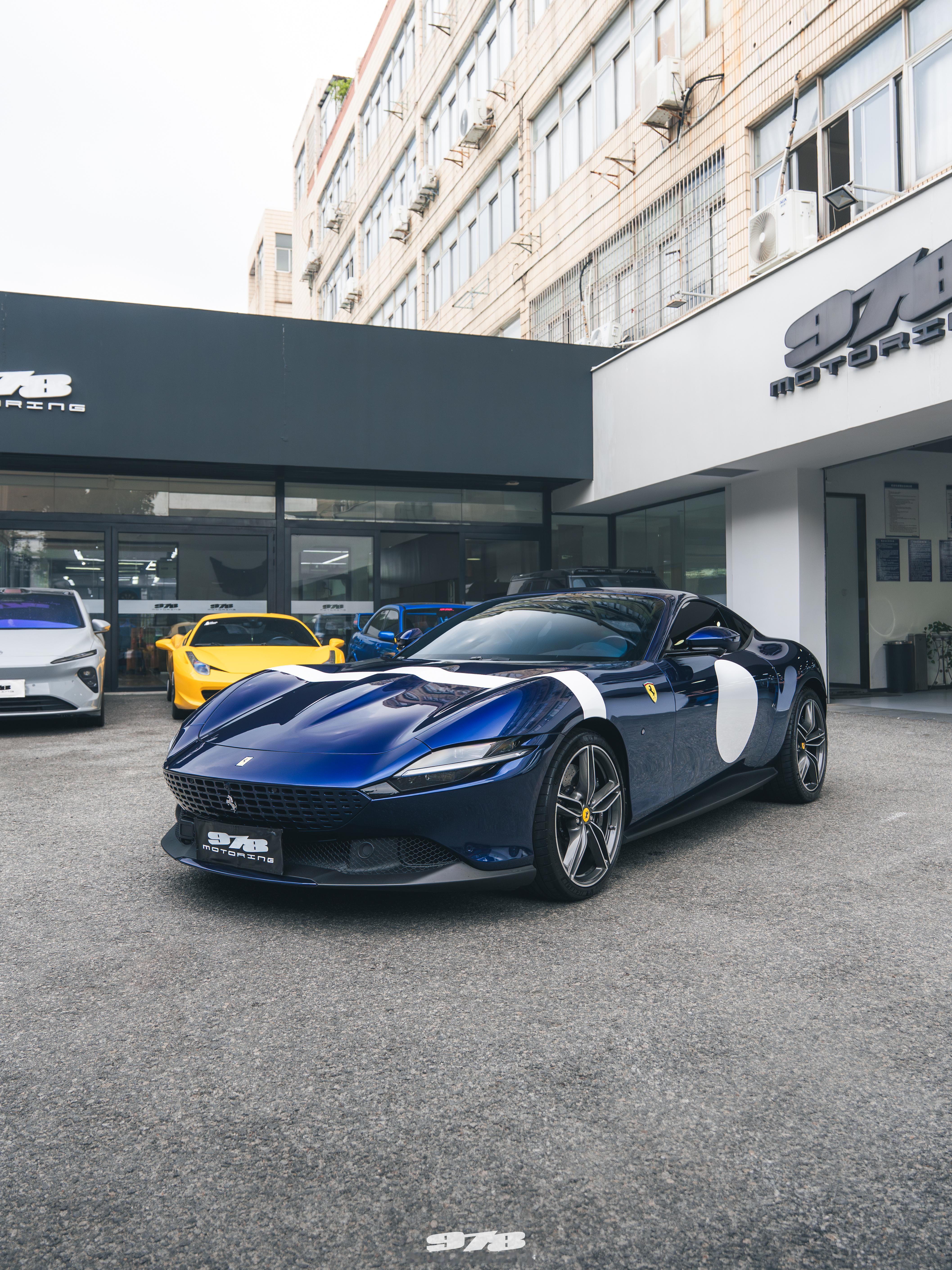 978Motoring出品法拉利Roma × 丹泉石蓝涂装 全新登场深邃蓝色调为画笔勾勒法家优雅线条赛道拉花致敬跃马黄金年代以深蓝旋律,奏响全新的意式狂想