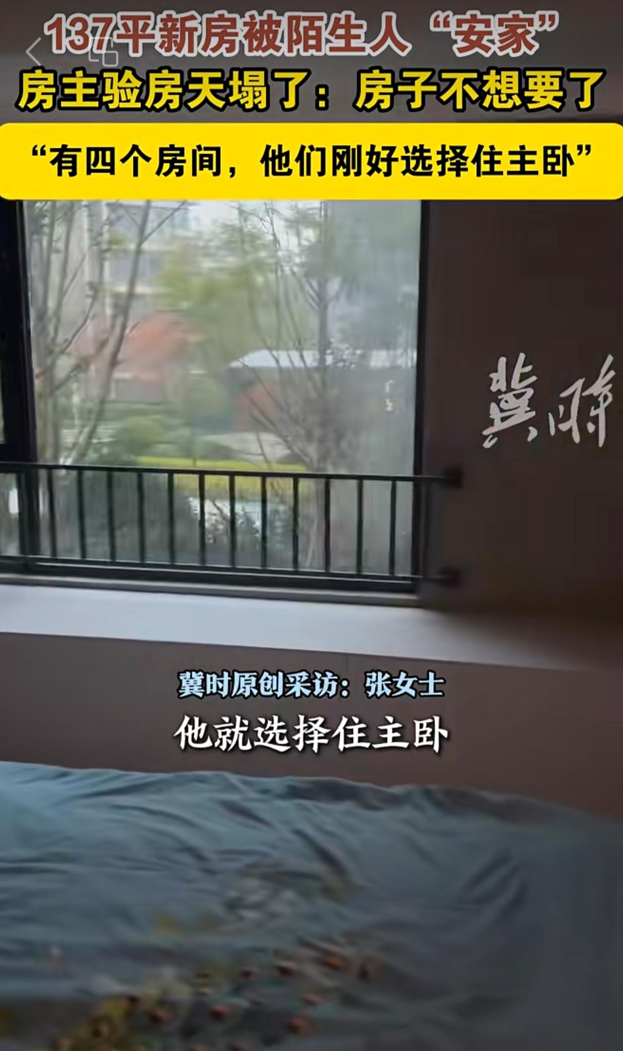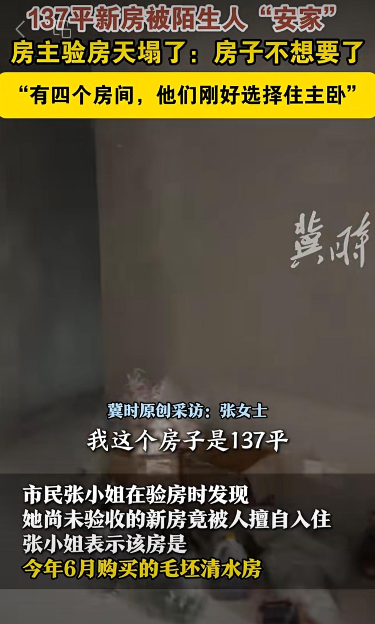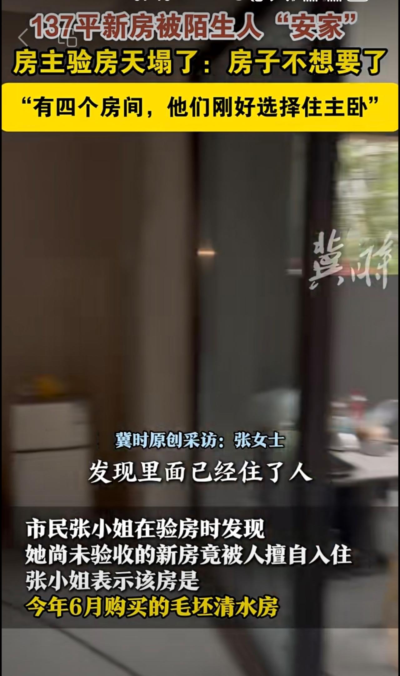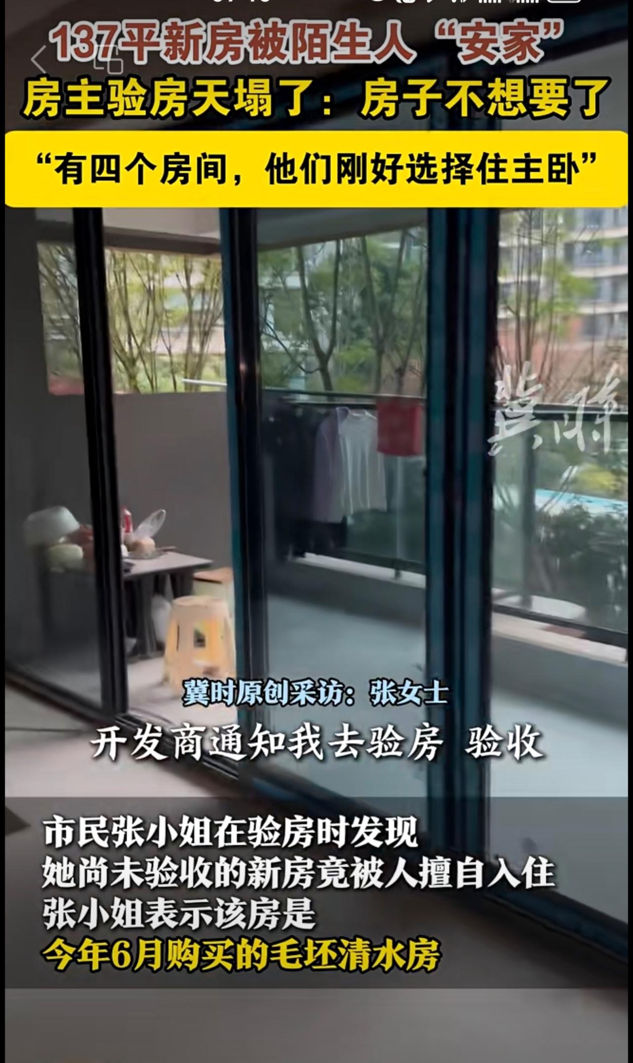 “有四个房间,他们刚好选择住主卧”137平新房被陌生人“安家”,房主验房天塌了:房子不想要了 (感谢@辣子酱酱)新房 验房