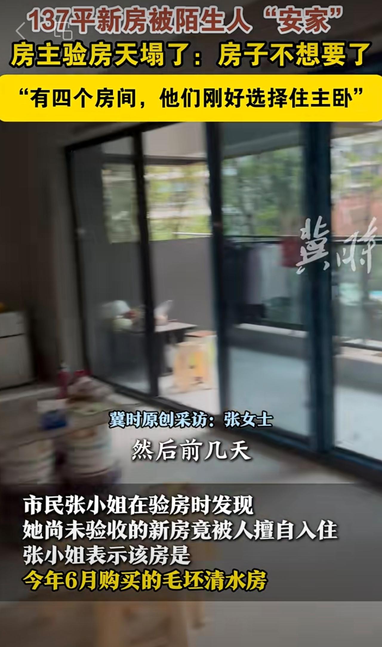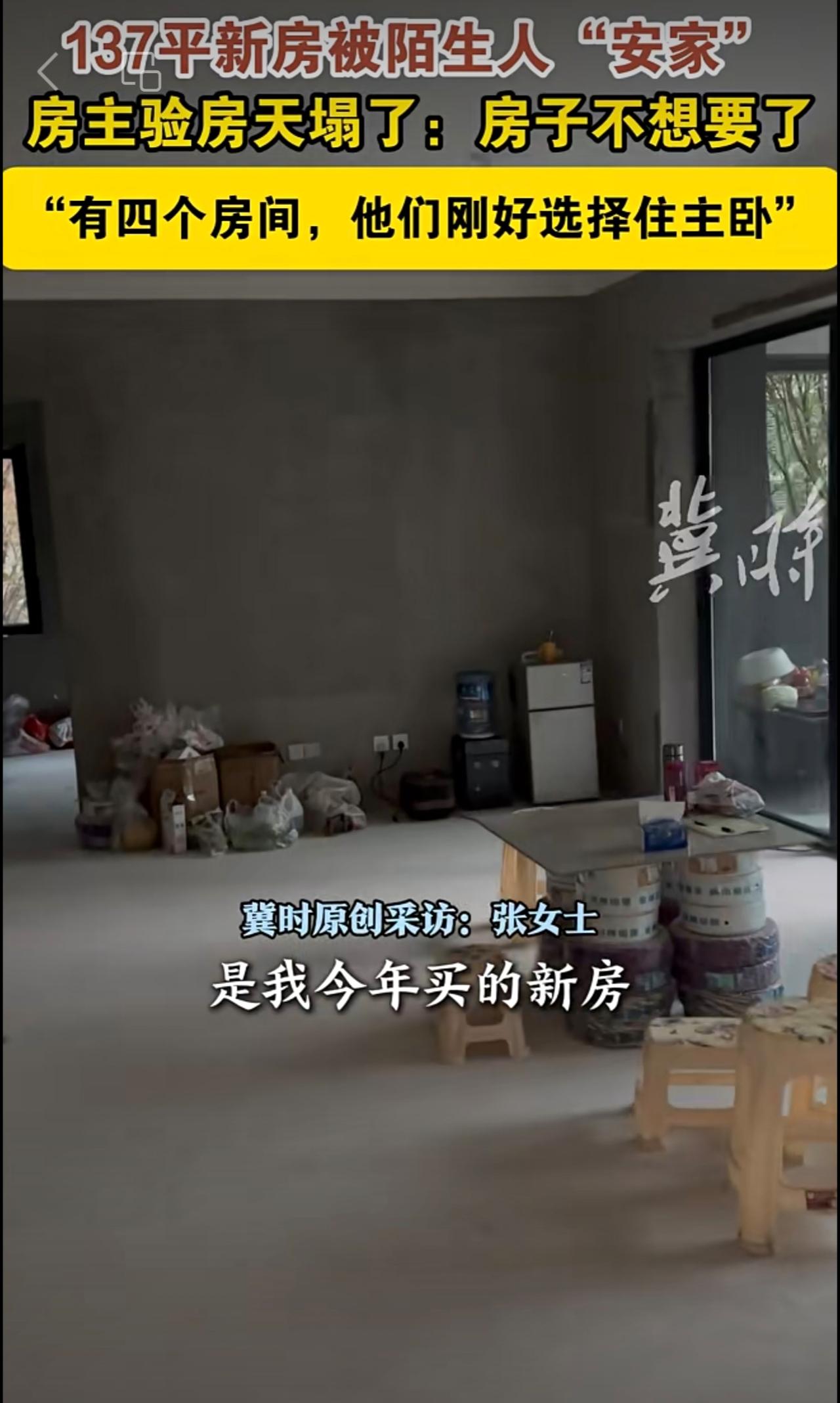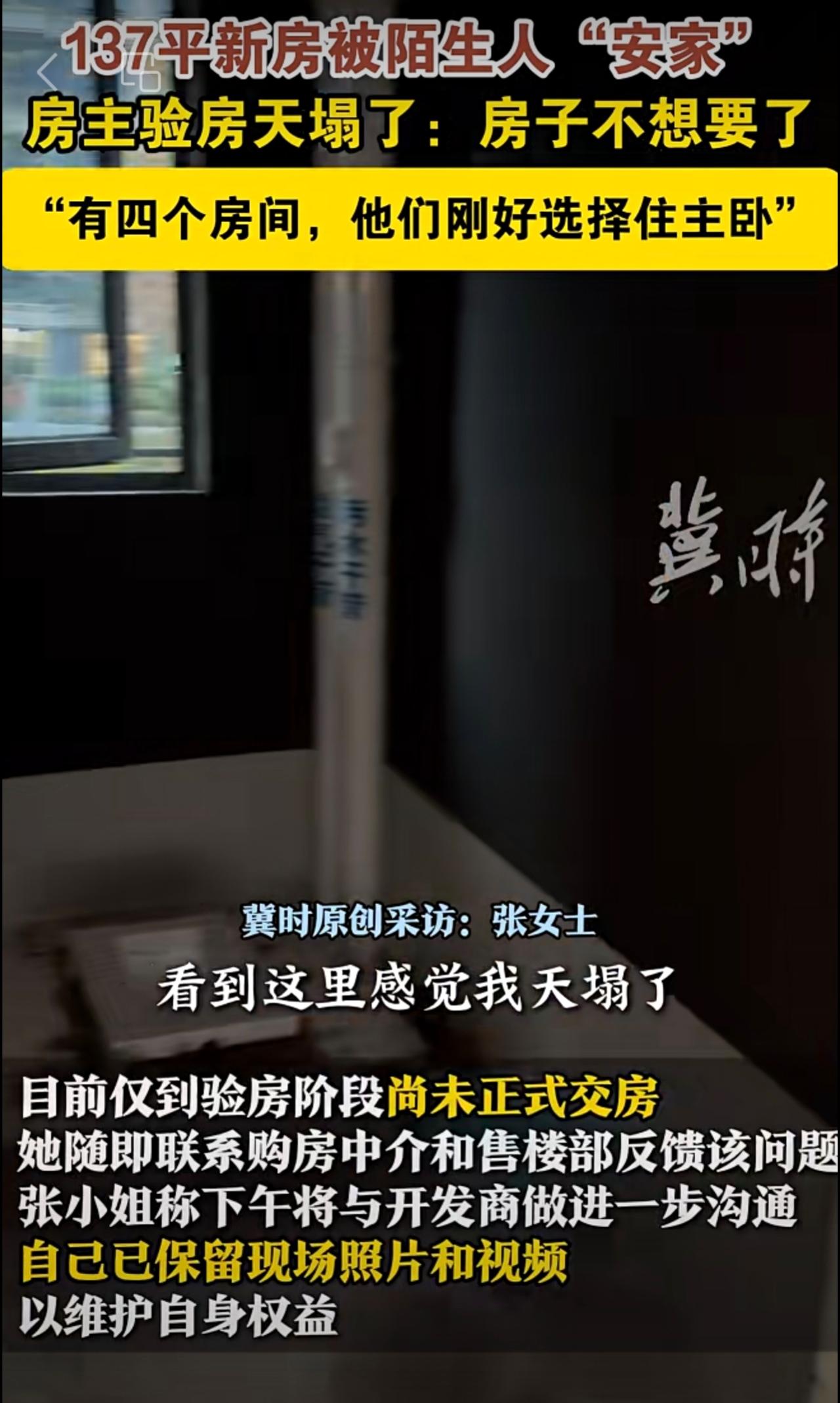 “有四个房间,他们刚好选择住主卧”137平新房被陌生人“安家”,房主验房天塌了:房子不想要了 (感谢@辣子酱酱)新房 验房