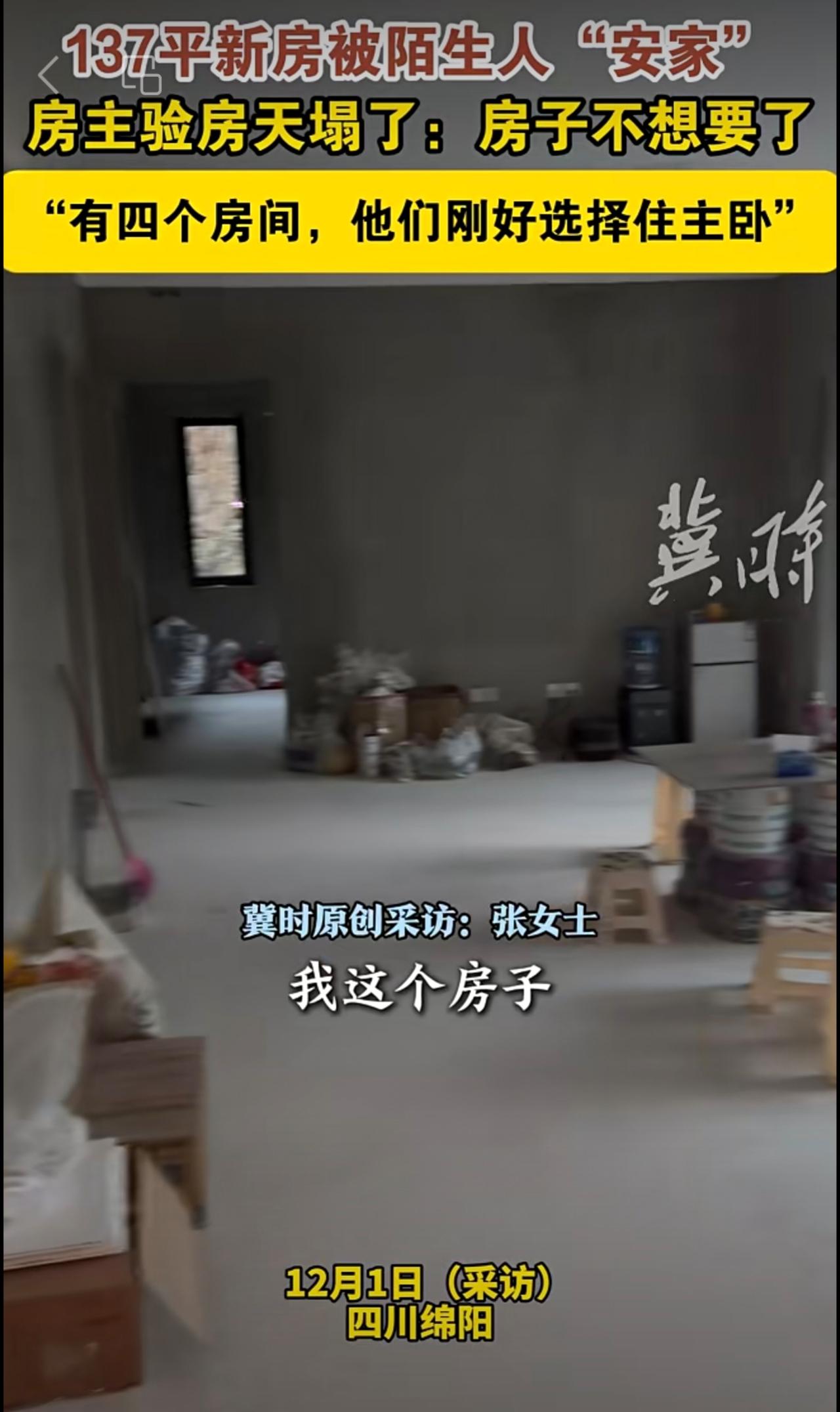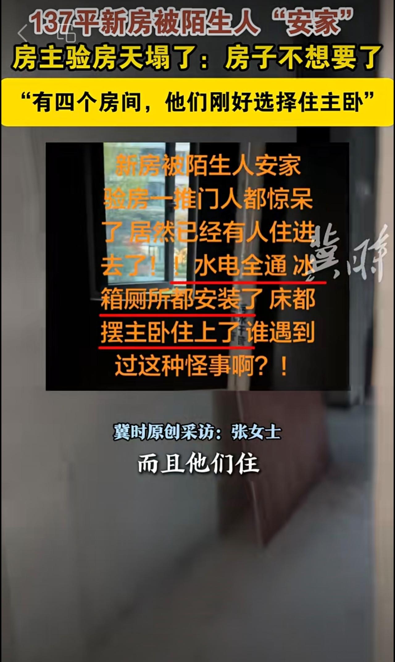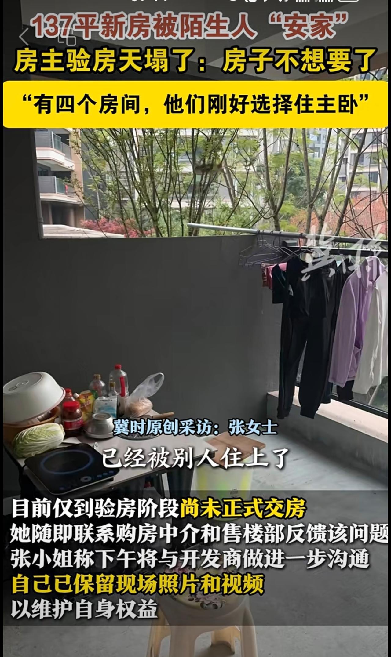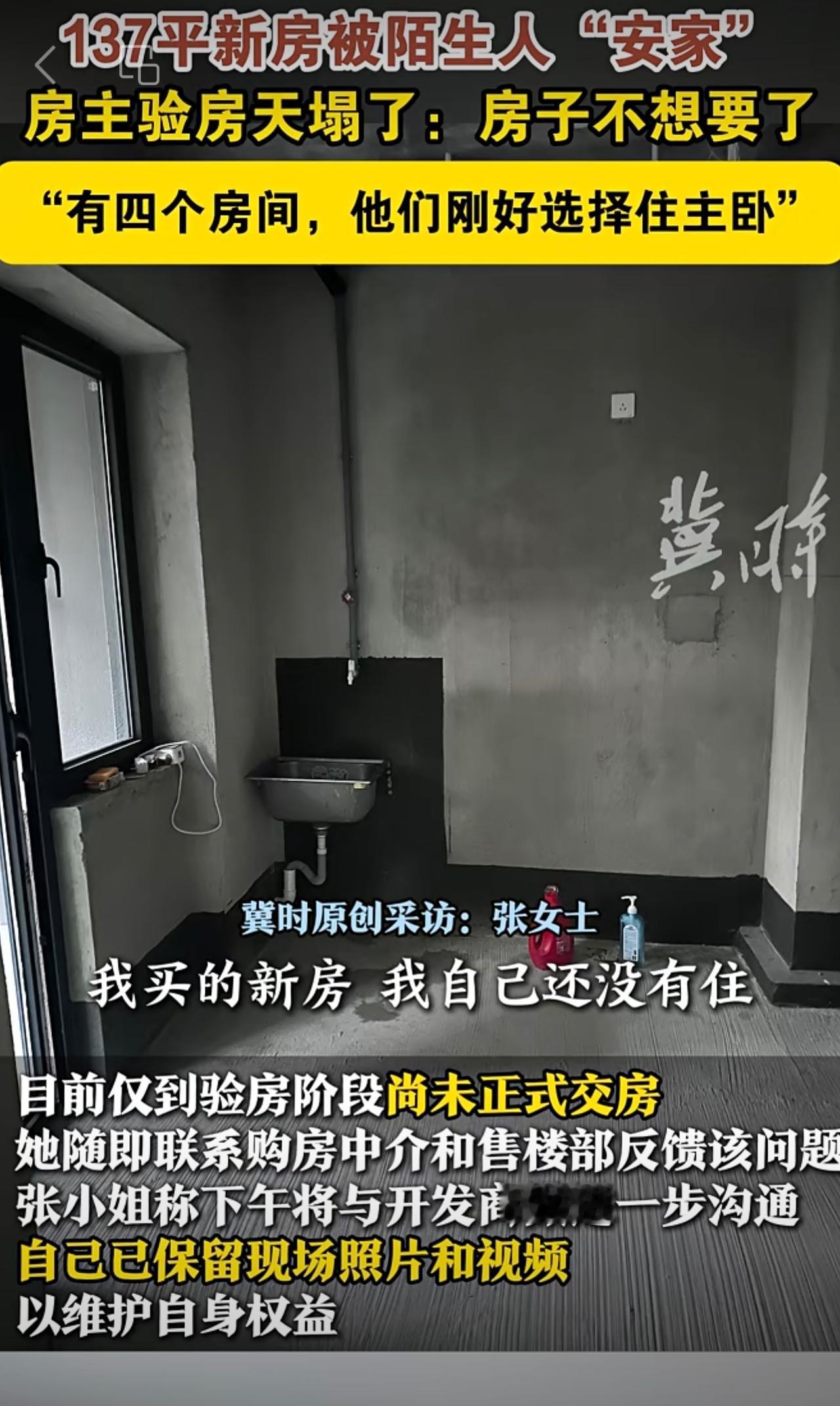 “有四个房间,他们刚好选择住主卧”137平新房被陌生人“安家”,房主验房天塌了:房子不想要了 (感谢@辣子酱酱)新房 验房
