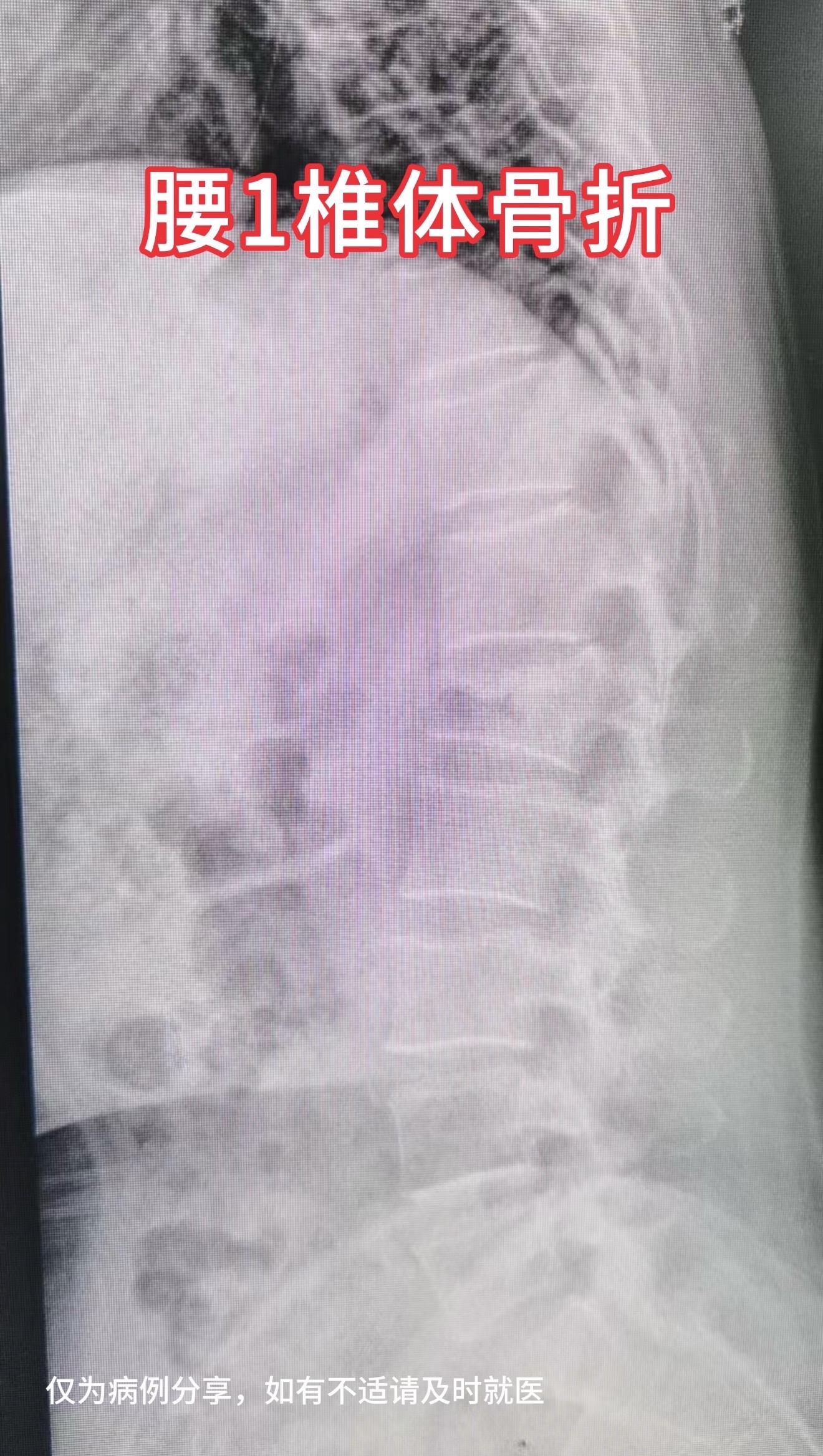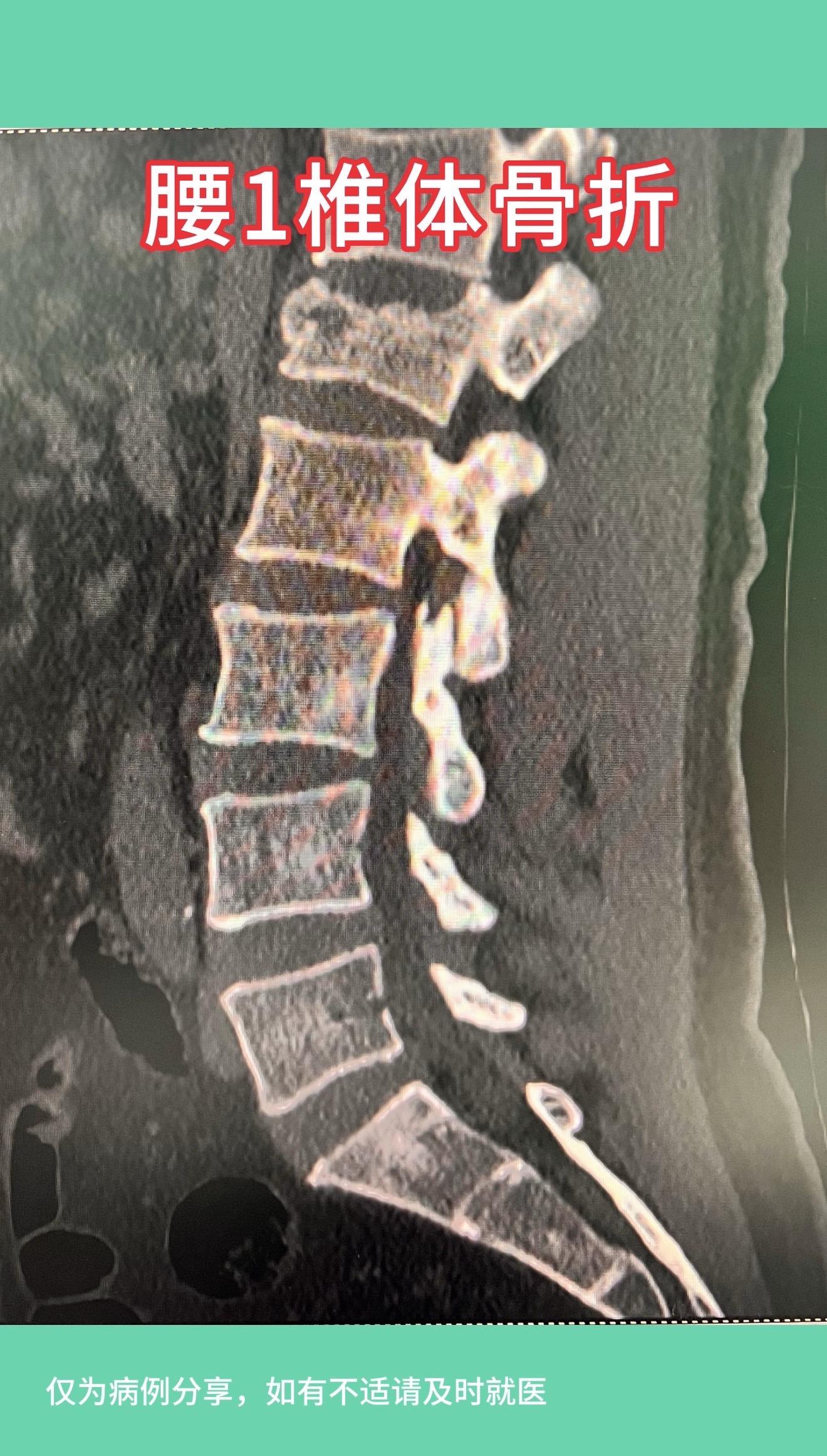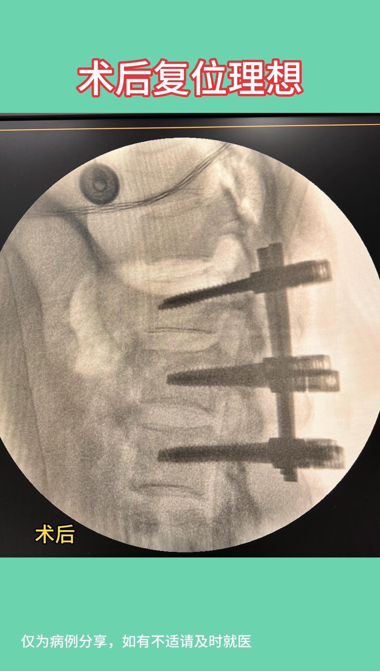 50多岁女性,在家干农活时从凳子上摔下,腰1椎体骨折,手术后复位理想...
