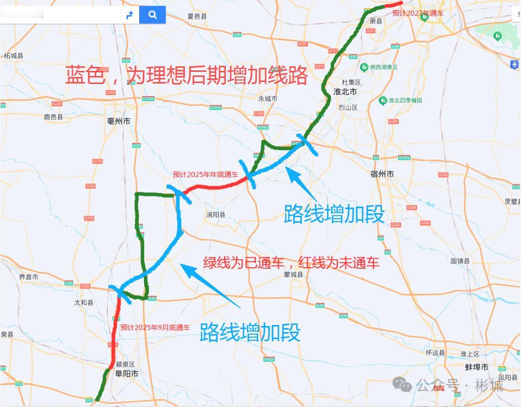 徐淮阜高速,徐州,经淮北,涡阳,到阜阳的高速公路! 目前建设现状,如下图。大家都知道这条线路虽然有自己的名字,但是道路曲折蜿蜒,名不副实。 但是增加两条联络线,可以完美的改善这条东北——西南方向的高速路线。 1、淮北段到涡阳段增加一小段联络线,26公里,既可以减少距离,又可以减少拥堵。 2、涡阳到阜阳段,可以增加一条联络线,36公里,这样涡阳到阜阳也缩短了距离。 这样投资没有多少,反而增加很大的效益。