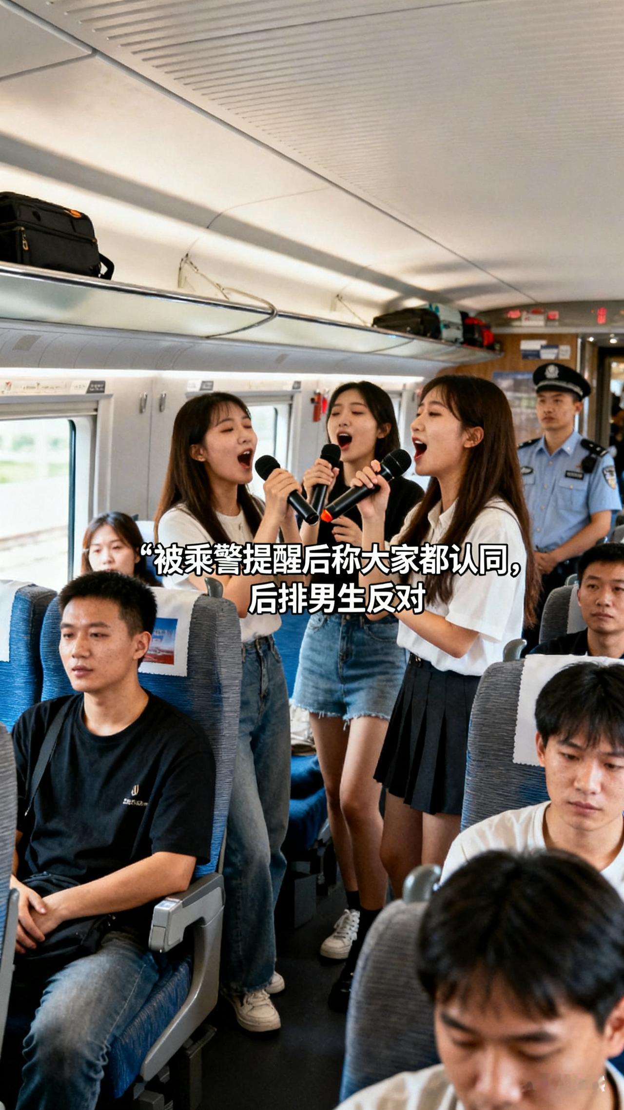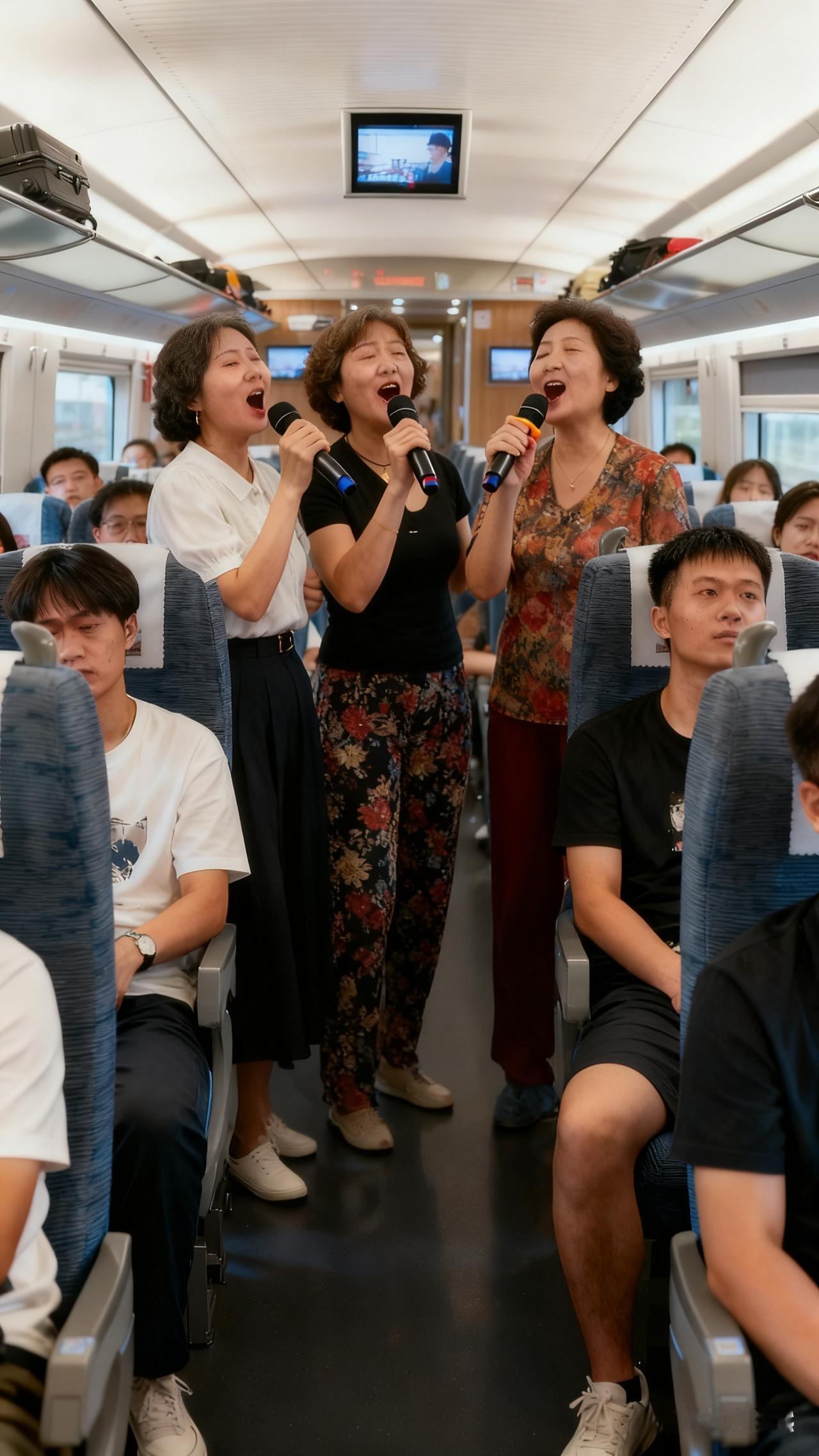 【高铁上大妈唱歌被怼:“大家都认同”?后排男生一句“我反对”太解气!】 高铁车厢秒变KTV? 多名大妈大声唱歌还邀人点歌,乘警提醒后居然理直气壮:“大家都认同”。 结果后排男生直接开麦:“我反对!” 这话一出,如同暗夜里的一束光明。 多少人遇到公共场合噪音,都只能默默忍了? 大妈们把“自我快活”凌驾于他人安静之上,还拿“集体认同”当挡箭牌,属实有点离谱。 高铁是公共空间,不是私人包厢。 想唱歌可以去KTV,想热闹可以约线下,但别把自己的快乐,变成别人的“精神折磨”。而男生这句“我反对”,更像替无数沉默的乘客出了口气。 公共秩序,从来不是“少数服从多数”的任性,而是“己所不欲勿施于人”的自觉。 不过,如果是配图中的美少女要献歌,大家会怎么对待?
