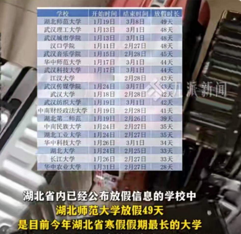 2025年的日历即将翻到最后一页,当北方城市已经开始期待初雪,一场关于“谁家寒假最长”的全国高校大比拼,已在网络上悄然拉开序幕。这不仅仅是一份放假通知,更像是一张张充满地域特色和校园个性的“寒假名片”,让无数在校生和毕业多年的“过来人”都忍不住凑上前,一探究竟。 今年的寒假版图上,广东高校无疑成了最令人羡慕的“南方土豪”。多所高校的假期长度轻松突破50天大关,这意味着当一些同学还在为期末考试埋头苦读时,广东的学子们可能已经打包好行李,准备迎接一个超长待机的暖冬假期。这种“奢侈”的放假时长,让不少北方高校的学生隔着屏幕都能感受到那股湿润的暖风和悠闲的气息。 然而,如果把目光投向西南,你会发现一个更“夸张”的存在。贵州工贸职业学院以一己之力,将寒假的天花板直接拉到了70天。从12月20日到次年3月1日,整整两个多月的假期,足以让一个学生学会一项新技能,或者完成一次深度旅行。这个消息一出,评论区瞬间“炸锅”,充满了“又是别人家的学校”的惊叹与调侃。70天,这个数字本身就是一个传奇,它让“寒假”这个词的定义,从短暂的休整,升级成了真正意义上的长假。 当然,有最长就有最短。在湖北的高校圈里,这种“贫富差距”体现得淋漓尽致。汉口学院的学生无疑是幸运的,1月11日就能率先开启假期模式,成为朋友圈里最早晒出回家车票的人。而华中农业大学的同学则显得有些“委屈”,他们的假期仅有28天,几乎是贵州工贸职业学院的三分之一。湖北师范大学则上演了一出“早放晚开”的戏码,1月20日放假,却要等到3月8日才开学,49天的假期长度在省内也算得上是优等生。这种鲜明的对比,让“同一个省份,不同的寒假”成了学生们热议的话题。 这些看似随意的日期背后,其实藏着高校各自不同的节奏与考量。有的学校教学安排紧凑,学期结束早,自然放假就早;有的学校则可能因为校历安排、实习实践或者特殊的教学周期,导致假期被压缩。汉口学院1月11日放假,湖北师范大学3月8日开学,这些具体的时间节点,勾勒出的是不同高校独特的运行逻辑。 对于学生而言,寒假的长短直接关系到他们的生活规划。一个70天的超长假期,可以用来做一份完整的实习,可以学车考驾照,也可以来一场说走就走的旅行。而一个28天的短暂假期,可能意味着大部分时间要用来陪伴家人,或者为下学期的课程做预习。这不仅仅是时间的多寡,更是人生体验的宽度差异。 这场全国高校寒假时间的“大赏”,也像一面镜子,映照出中国高等教育的多样性与灵活性。它打破了人们对大学“统一管理”的刻板印象,展现了不同地区、不同类型高校在办学自主权下的个性化选择。从广东的50多天,到贵州的70天,再到湖北的28天到49天不等,每一个数字背后,都是一所学校对教学节奏、学生需求和社会环境的综合回应。 随着2025年年末的脚步越来越近,这些已经出炉的寒假时间表,无疑给紧张备考的学子们注入了一剂强心针。无论假期长短,它都意味着一段可以自由支配的时光,一次休整身心、重新出发的机会。或许,我们不必过分纠结于天数的多少,更重要的是如何利用好这段宝贵的时间。毕竟,假期的意义,终究在于它的内容,而非它的长度。 当贵州工贸职业学院的学生在12月20日踏上归途,当华中农业大学的同学在1月下旬才放下书本,他们都将在各自的寒假里,书写属于自己的故事。而这,正是青春最真实、最生动的模样。 以上内容仅供参考和借鉴