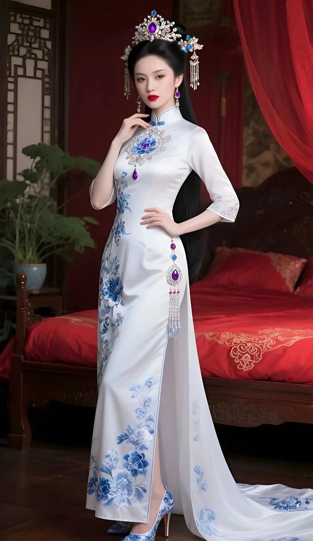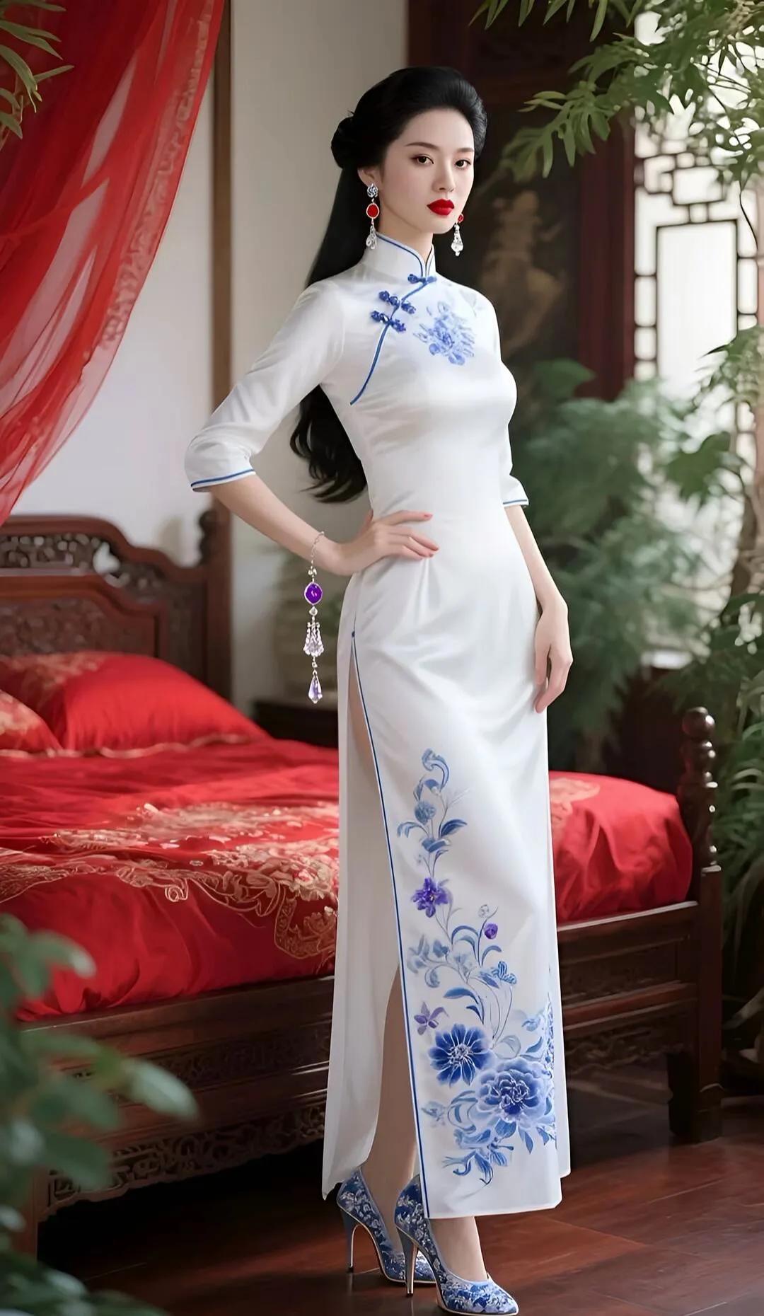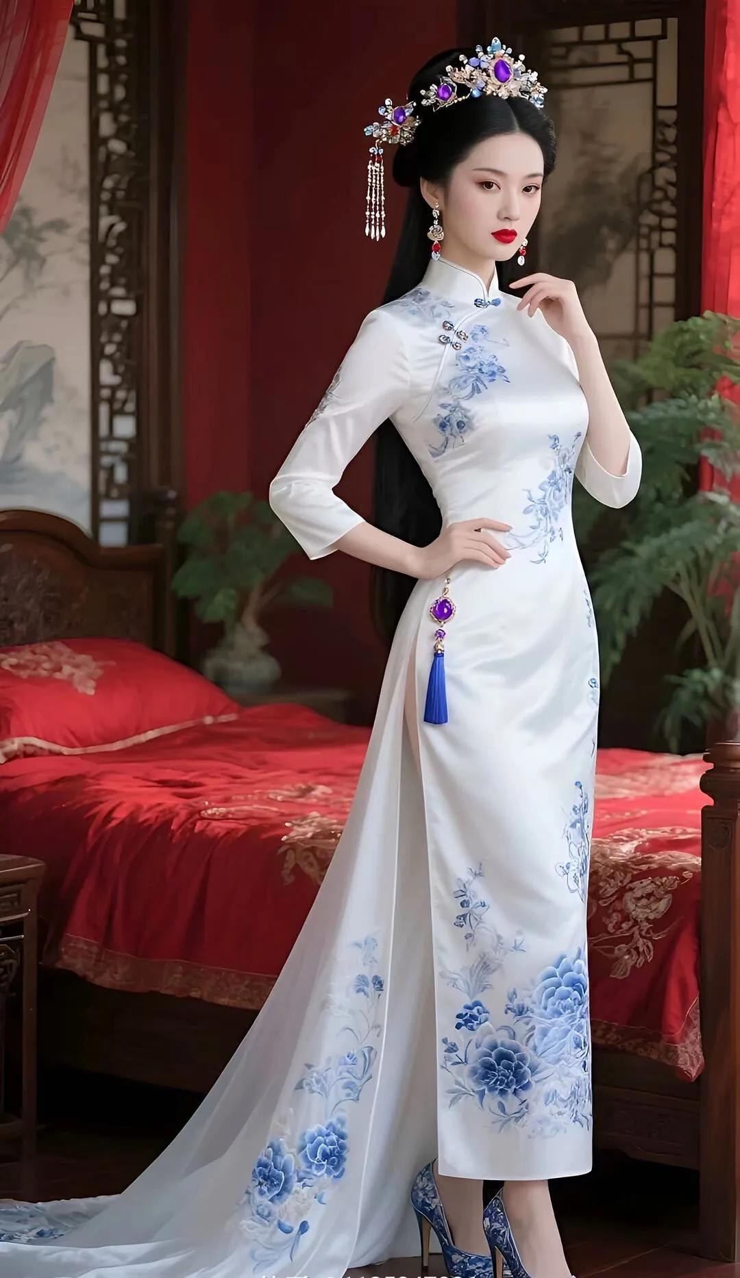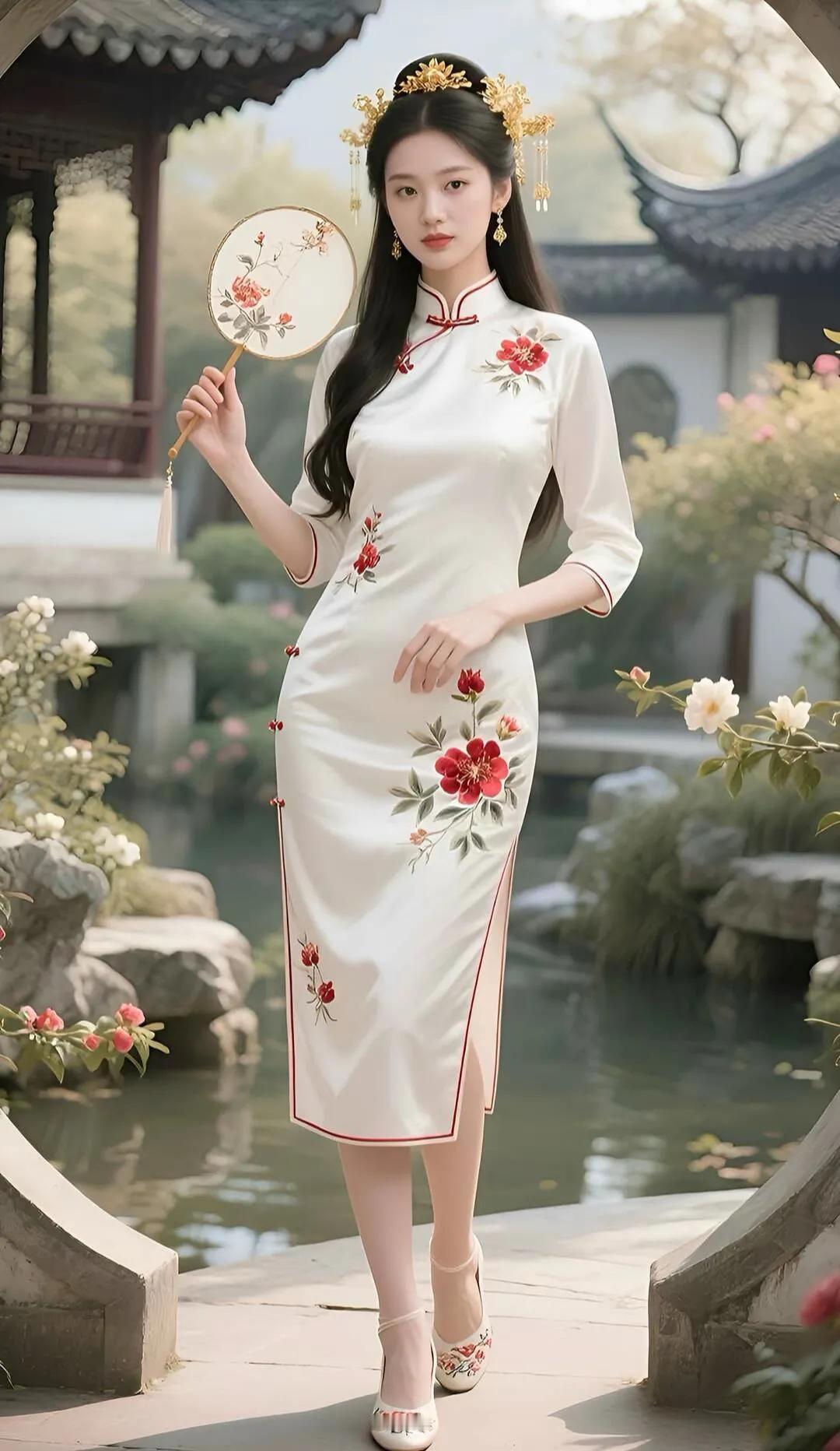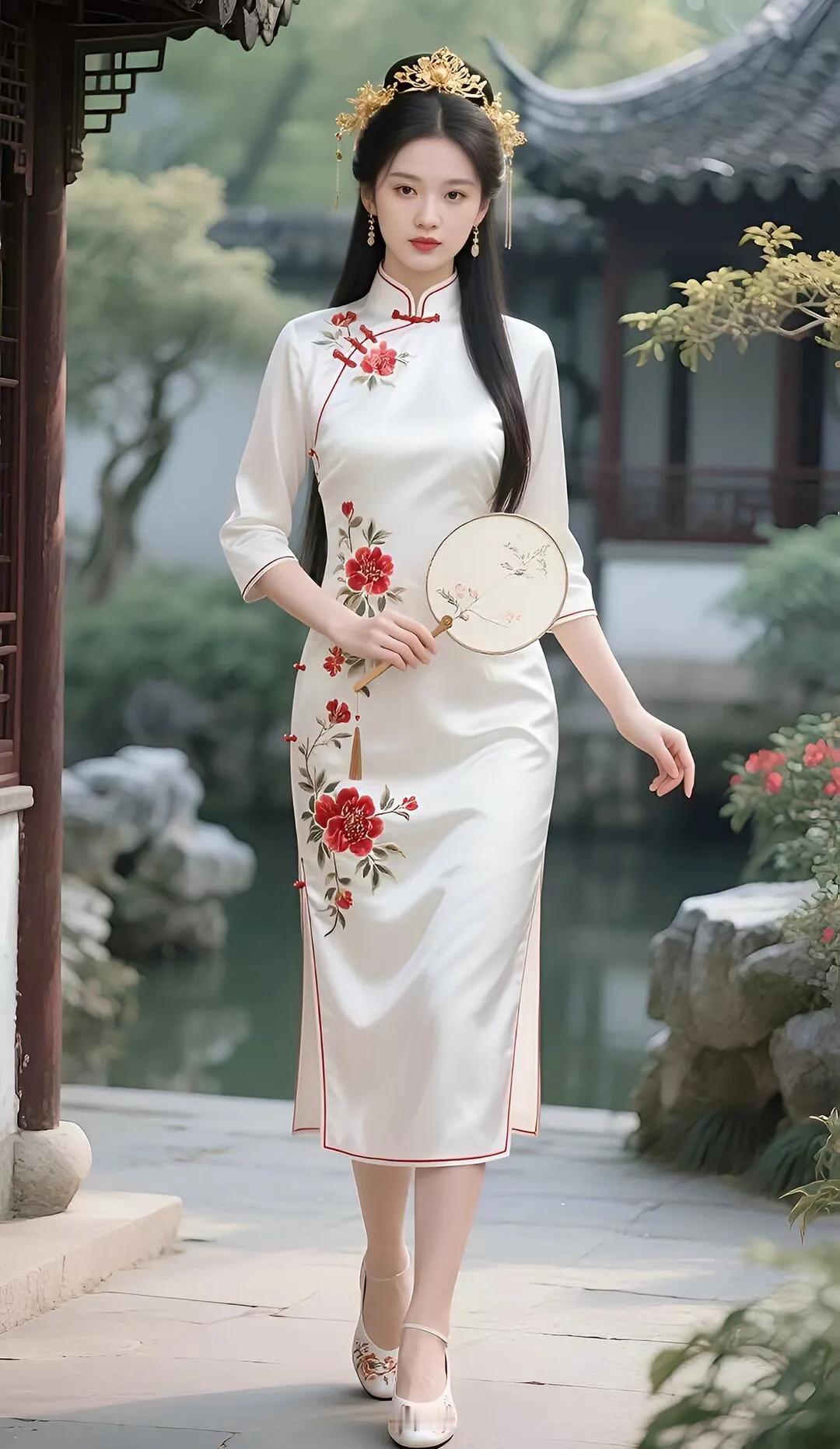 温柔甜美的微笑,优雅的白纱连衣裙,散发着迷人的魅力。