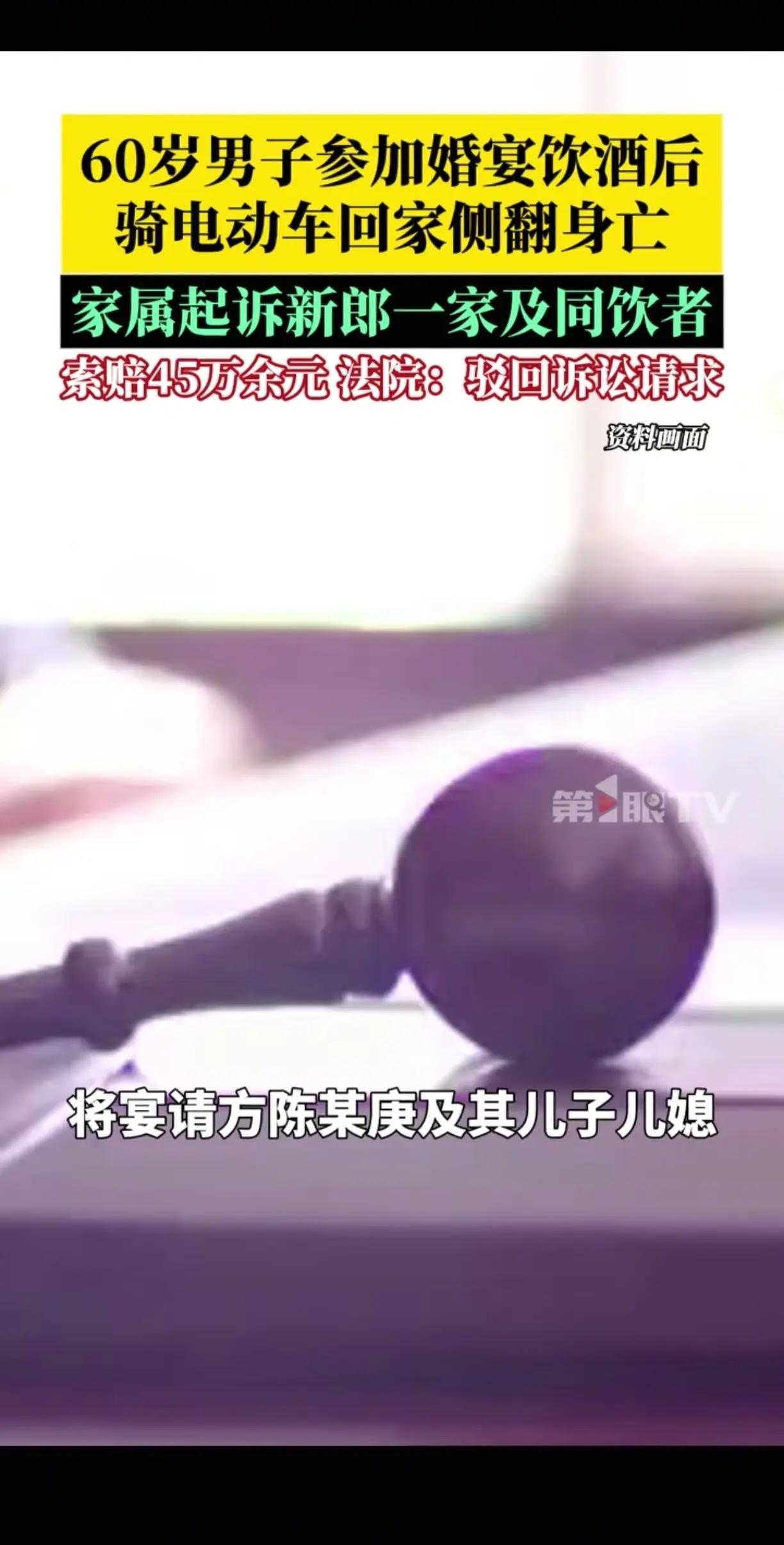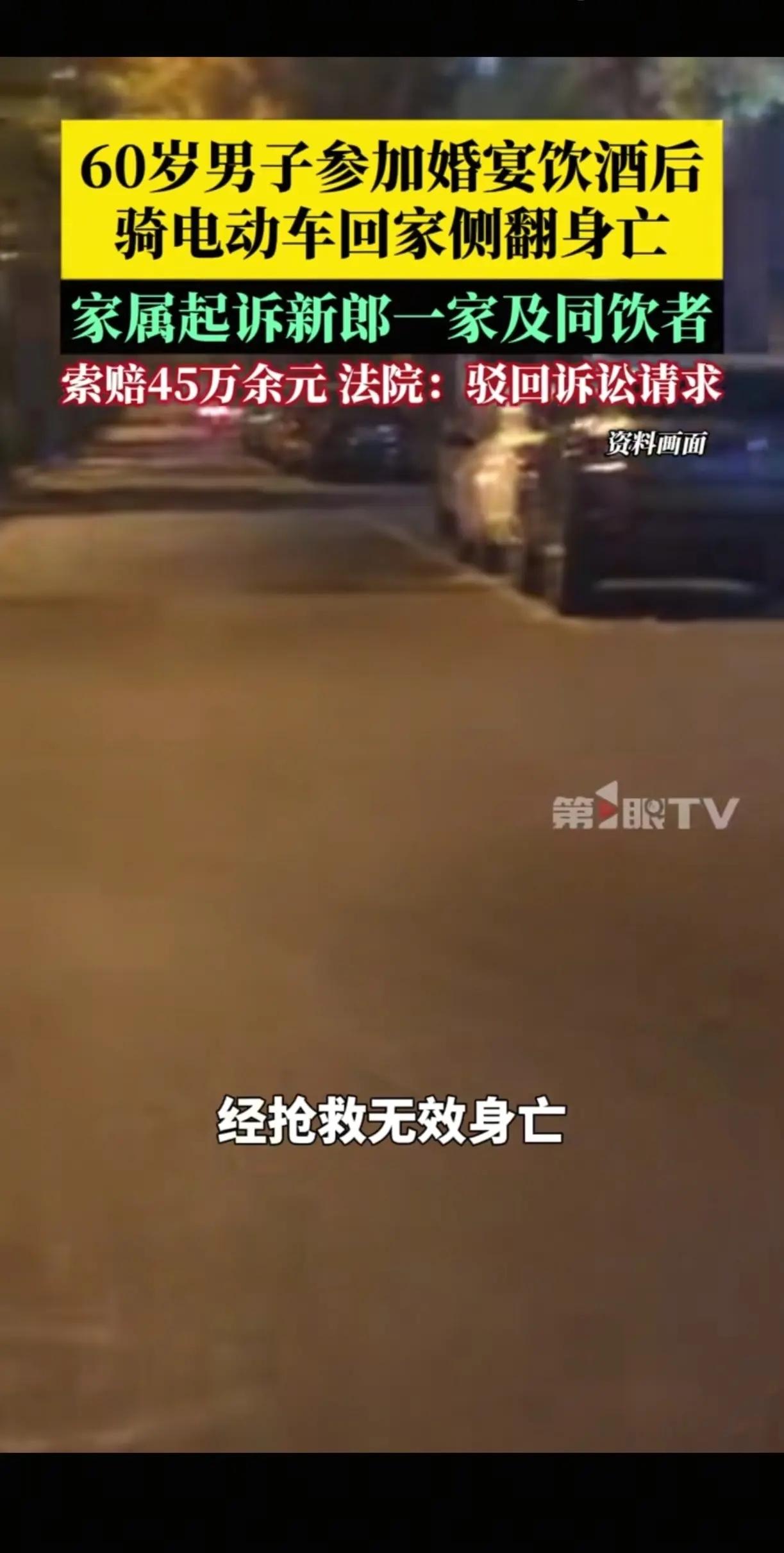“想钱想疯了?”江西宜春,男子邀请60岁的战友来参加儿子儿媳的婚礼,吃席时,战友喝了2两53度的白酒,散席后,战友骑着电动车回家途中发生侧翻,不幸身亡,事后,战友妻儿将男子、男子儿子、儿媳,及2名同饮者告上法院,索赔45万余元,法院一审、二审作出公正判决。 喜宴的酒桌上,战友端着酒杯凑过来,酒液晃得透亮:“老陈,你儿子结婚,这杯我干了!”他伸手拦,指尖碰着酒杯沿:“你年纪大,少喝点,等下我送你。”战友摆着手笑,仰头把酒灌了下去。 散席时天擦黑,战友抓过电动车钥匙往兜里塞,他追出去:“我叫个车送你!”战友拍着车把:“这点路,骑电车十分钟就到,稳当。”话落就拧了油门,车尾灯晃了晃,没入了巷口。 接到派出所电话时,他正收拾喜宴的剩菜,手机“啪”地砸在菜盘里。赶到现场时,电动车歪在路边沟里,战友蜷在草窠里,身上还沾着喜酒的味儿,他蹲下来,喉咙里堵得发不出声。 开庭那天,战友妻子攥着诉状哭:“他要是不喝那酒,怎么会出事!”同饮的老伙计红着眼辩解:“我们劝了,是他非要走。”法官翻着证据,最后敲了法槌:“驳回诉讼请求。” 他走出法院,风裹着冷意吹过来,口袋里还揣着战友落下的烟。喜字还贴在自家门上,红得像团烧过的灰,他突然蹲在路边,眼泪砸在鞋尖上——这喜酒,怎么就成了送别的酒。 各位读者你们怎么看?欢迎在评论区讨论。 2025-12-2发布
