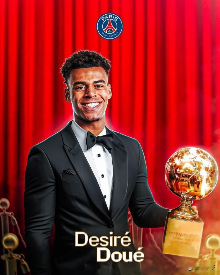 下一个姆巴佩,20岁的杜埃领取2025欧洲金童奖! 在昨天晚上举办的欧洲金童奖颁奖典礼上,巴黎20岁的边锋杜埃领取了2025年金童奖杯,成为金童奖历史上第23位金童。 杜埃拿金童奖可是实至名归了,上赛季杜埃为巴黎共出战61场比赛贡献16球16助攻的大号两双数据,帮助巴黎拿到了 欧冠冠军,法甲冠军等五冠王荣誉,可以说走上了巅峰。 最近这些年金童奖没有水货,亚马尔,贝林厄姆,加维,佩德里,菲利克斯,姆巴佩等都兑现了天赋,相信杜埃未来也会成为法国足球的核心,接班姆巴佩。