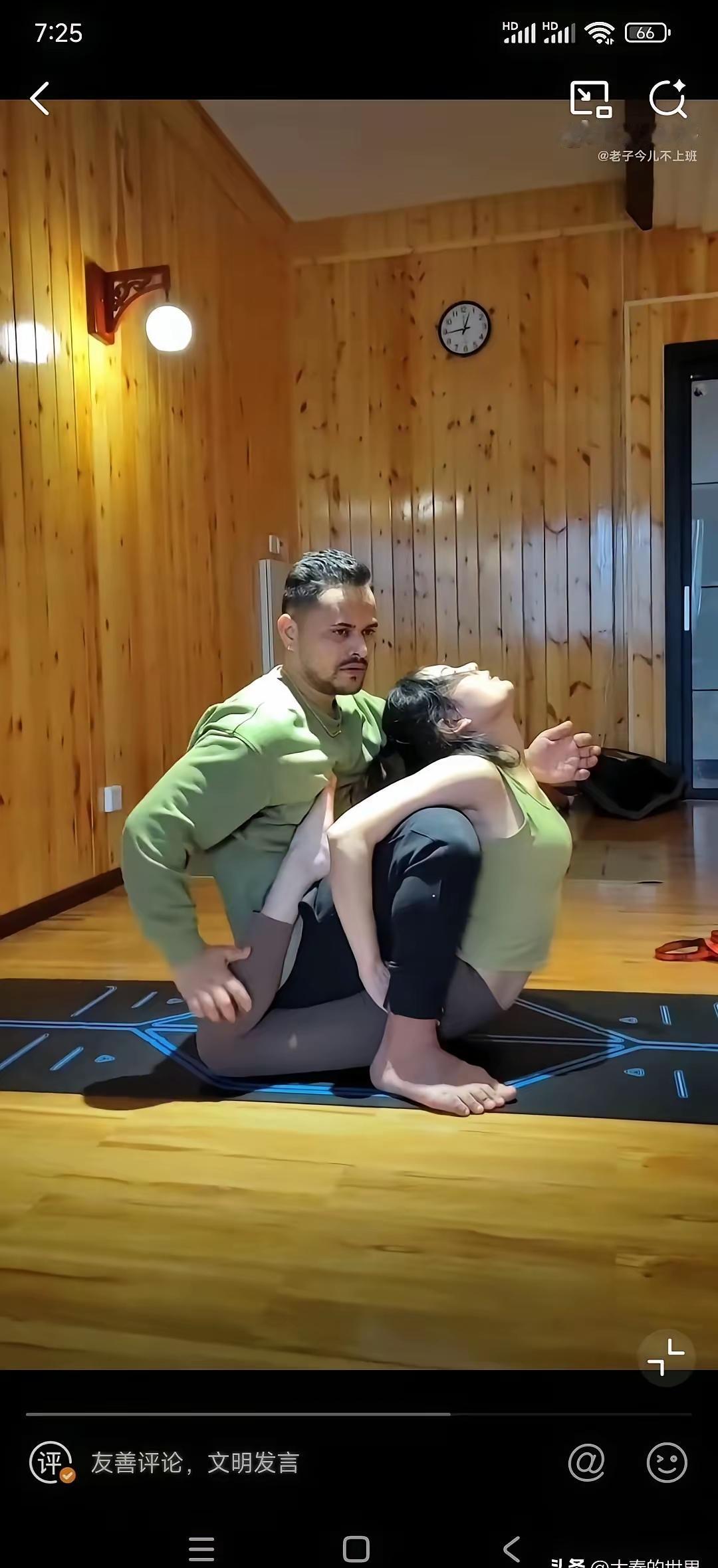 印度瑜伽男老师正在教女学员练功。 三哥这是尝试把学员搞成折叠模式啊,小姐姐头都快贴后背了,老师那眼神跟盯公式似的,主打一个“精准发力”。 这哪是拉伸啊,分明是人体重塑现场!想起我上次拍摄瑜伽馆客户,模特的下犬式,像变形金刚一样直接掰成了塌腰腊肠狗,对比这姐们儿的“极限折叠”,突然觉得还是自己所见所想肤浅了。 有没有练过这种“魔鬼拉伸”的朋友?评论区说说你们被老师“掰”的经历!