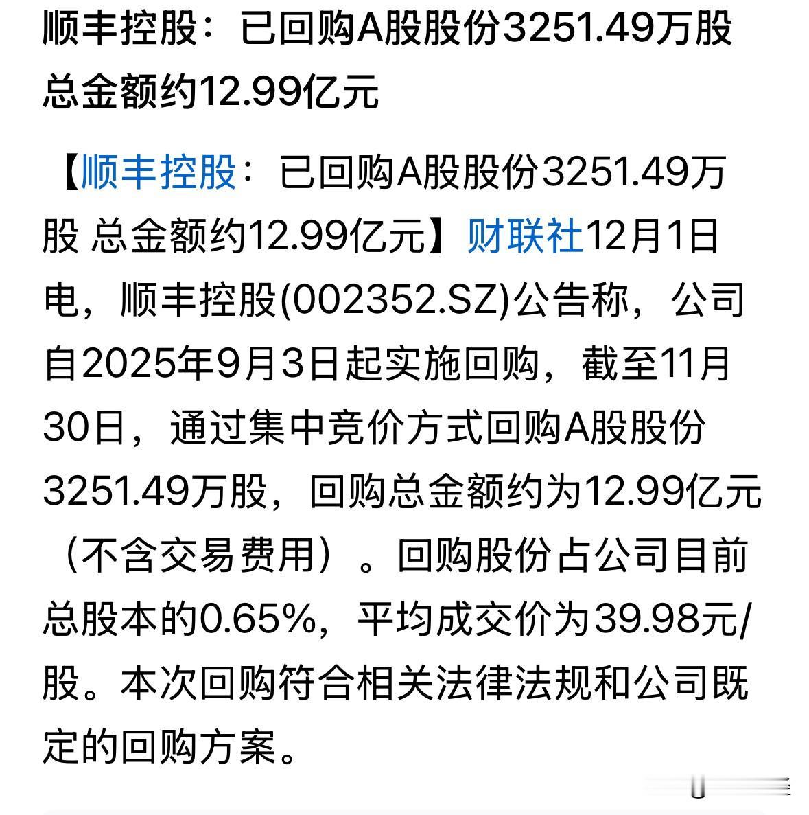顺丰控股跌跌何时休?从50元跌至38元,跌去24%,而回购总金额也达到12.99亿元的真金白银,回购均价39.98元,又是近5%的跌幅,根本止不住其支托股价的目的,而且本轮回购也不是以注销为前提。 作为物流行业的龙头,顺丰因其2.0亿股的免费赠送员工股权的方案设计备受争议。只要归母净利润达到正增长就符合要求,被认为对业绩增长缺乏正向激励! 个人持股观察,勿作操作建议!