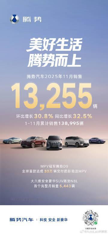 腾势11月卖了13255辆,这其中腾势N8L发挥了很大作用。 腾势N8L在11月卖了5443辆,目前的上市开局还算不错。 接下来腾势要稳住增长势头,还得继续看N8L怎么发挥了。【来自懂车帝车友圈】