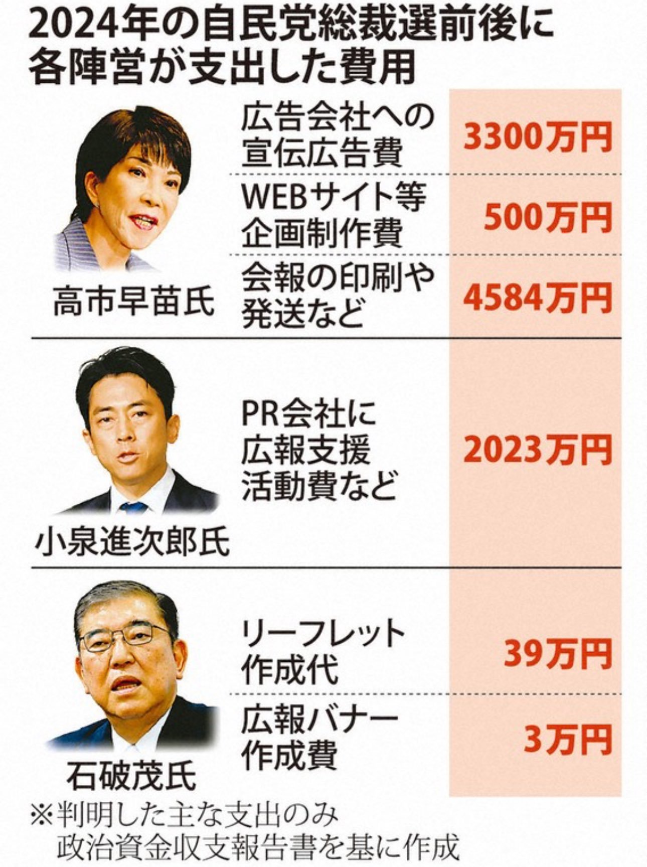 高市早苗被爆花8384万日元仍惨败 据《每日新闻》11月28日报道,在2024年日本自民党总裁选举中,高市早苗所属政治团体投入约8384万日元(约381万元人民币)进行宣传,最终却败给了宣传支出仅42万日元(约1.9万元人民币)的石破茂。仔细想想,这还是她败选时所用的宣传费用,这次当选,投入的金额估计已经过亿了。现在日网都在讨伐,洗脑的钱哪儿来的,支持者的数据哪儿来的,水军哪儿来的