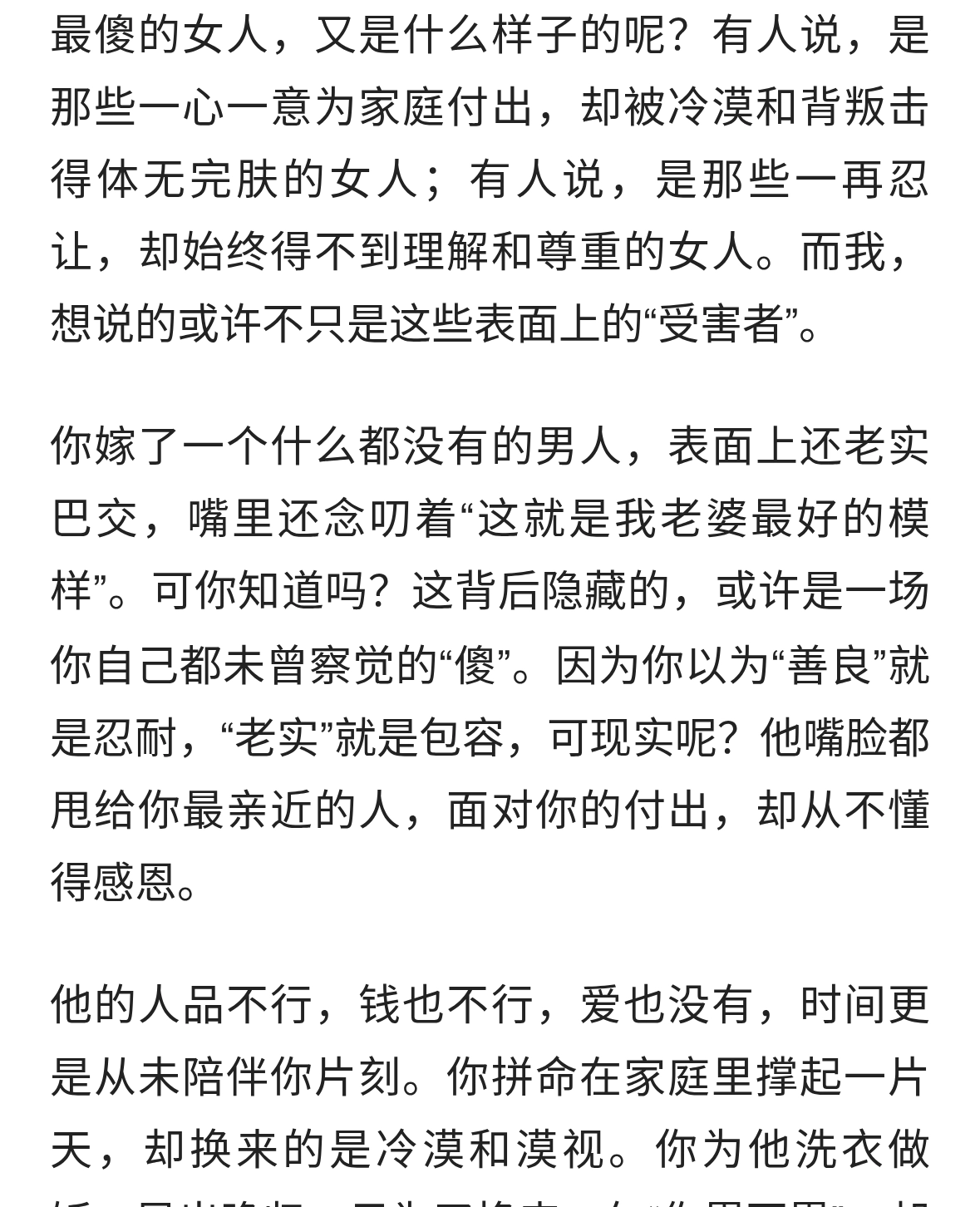 性学专家李银河说:“给所有男人一个忠告,不管一个女人多漂亮,身材多出众,哪怕好到