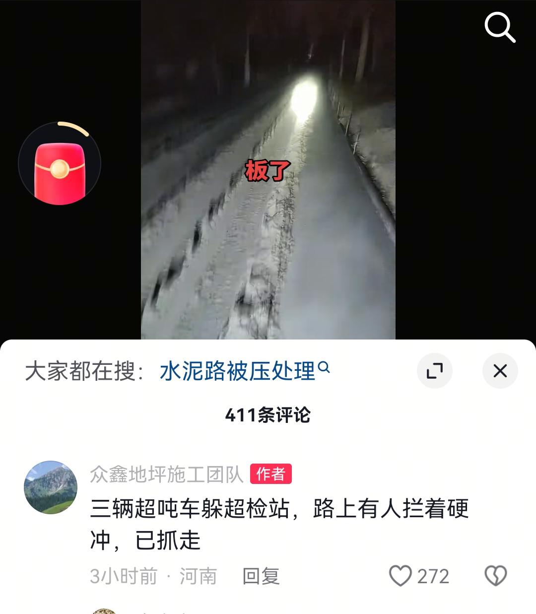 河南一地新建农村道路被硬闯的超限车辆压坏!施工企业称,路上有人阻拦,已被抓获! 一共三辆超限车辆,在凌晨3点的时候为了躲避检查,选择硬闯农村小路,结果这条农村小路上的水泥路是刚刚铺设的,将所铺设的水泥路面全部给损坏。 目前涉事的车辆和人员已经被抓获,施工企业称是凌晨3点发生的,水泥路面想补救就已经来不及了,只能把所有铺好的水泥路面全部刨掉重新铺设。 各位是怎么看的?欢迎评论区留言。
