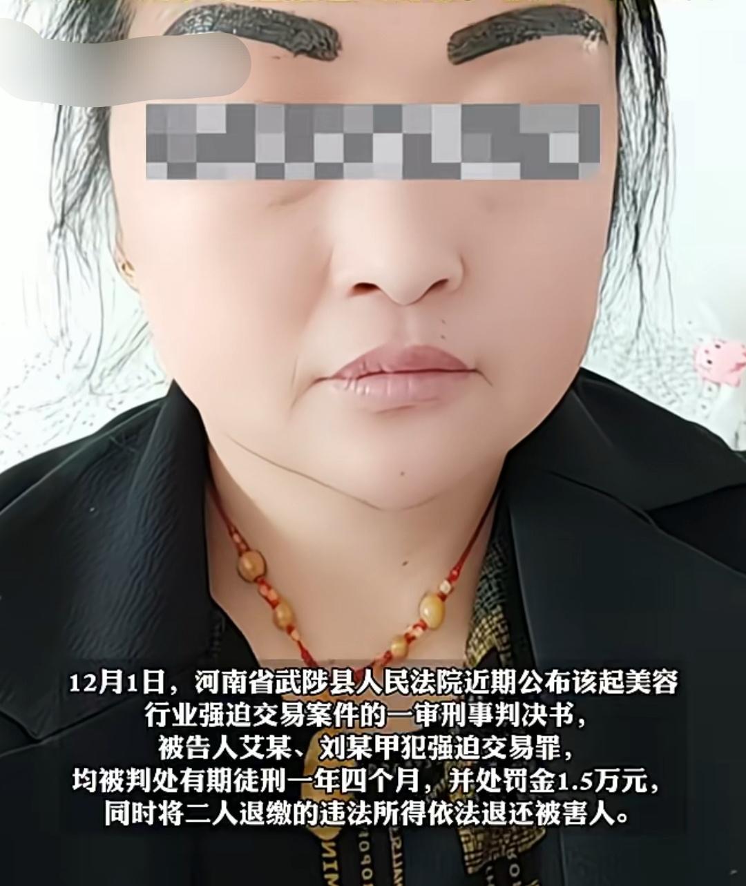 河南一美容院低价引流给顾客纹眉,故意把眉毛纹丑然后强迫顾客消费数千元。被骗顾客多达38人,被骗金额高达75万,美容院老板和员工犯强迫交易罪,被判刑1年4个月。