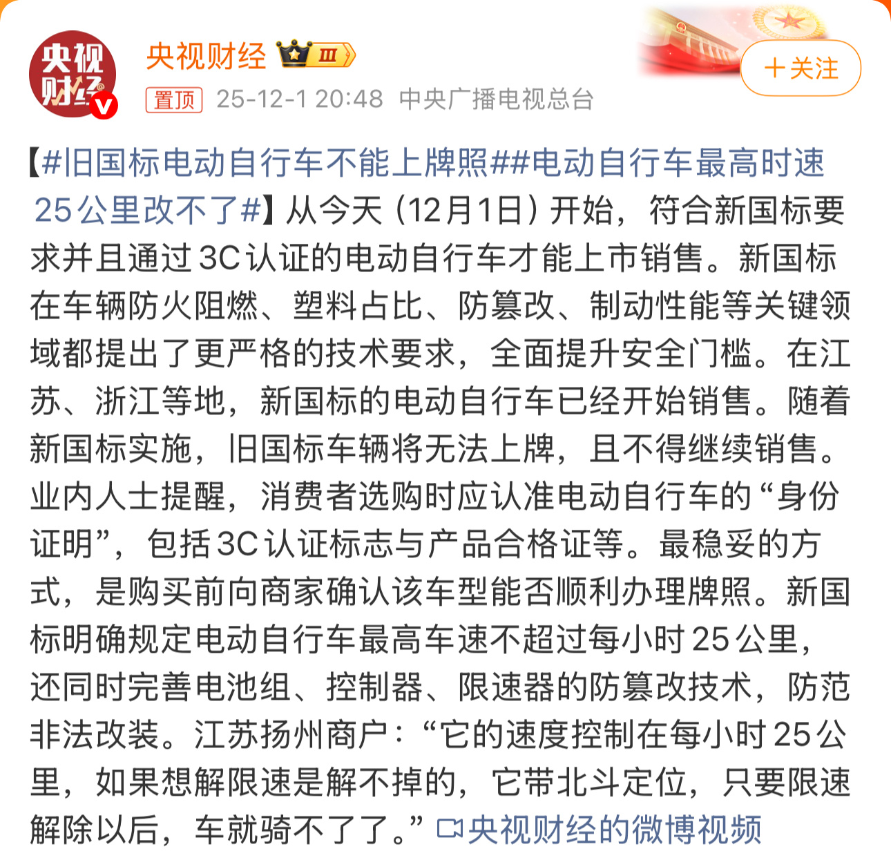 电动自行车最高时速25公里改不了新国标车限速25公里且无法改装,一超速就会自动断电,以后外卖小哥想快也快不起来了。
