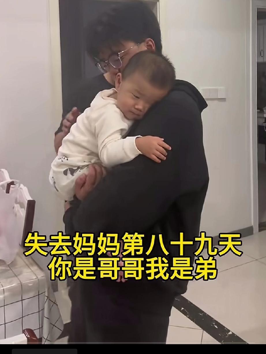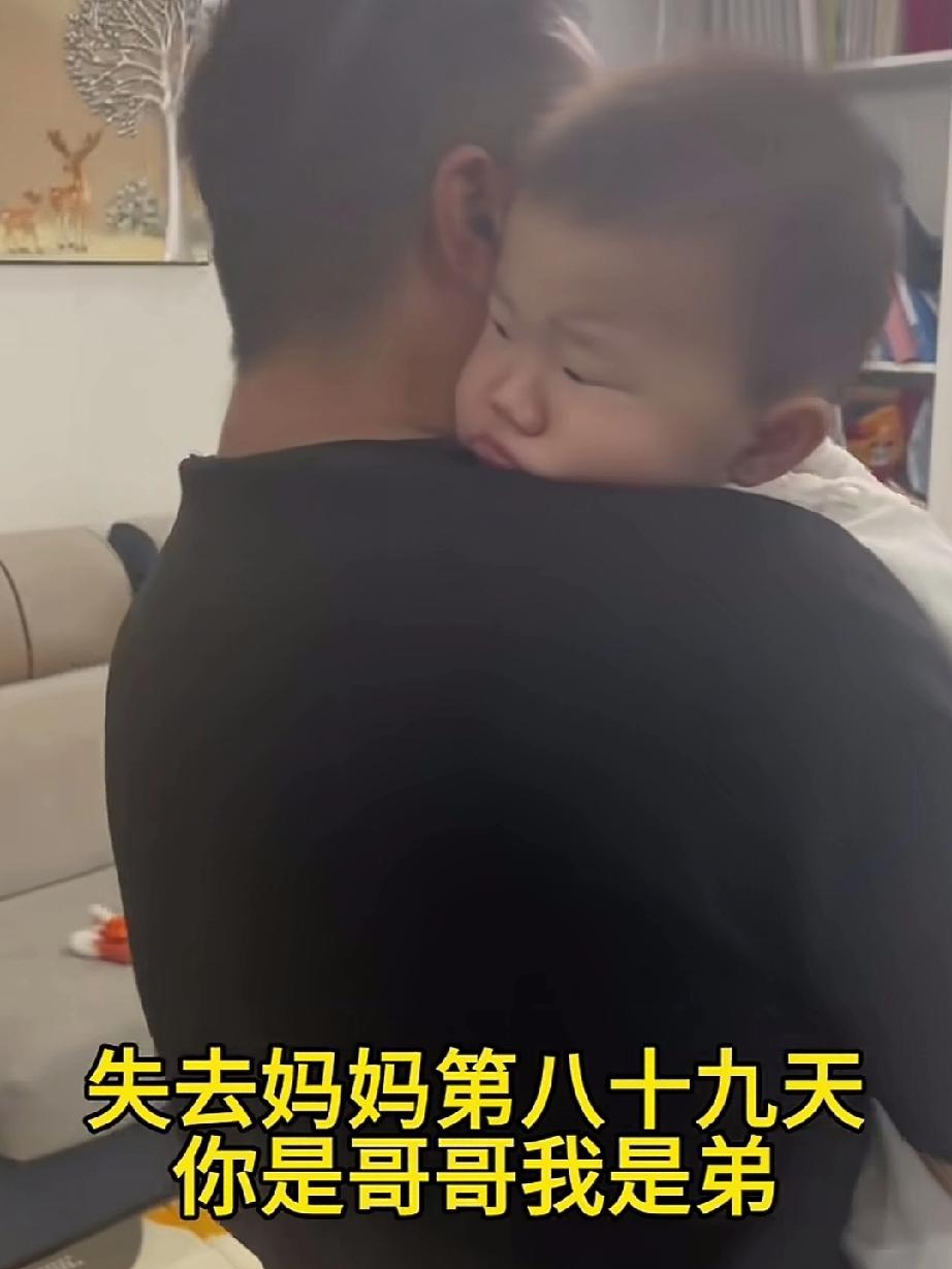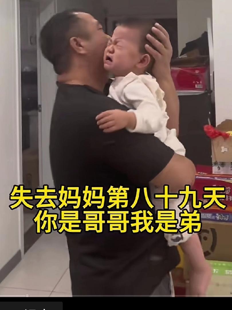 失去妈妈的第八十九天,宝宝不停的哭闹,尽管爸爸与哥哥俩人替换哄着,但还是安抚不住宝宝的情绪!可能是宝宝想妈妈了,他还小只是不会说,只能以哭闹的方式来表达要找妈妈,可怜妈妈因车祸离世,可他哪知道这辈子再也见不到了,还不到三个月的孩子,还没断奶呢!孩子的哭声催人泪下,小小的内心一片空洞,父亲伟大也代替不了母爱,没妈的孩子实在太可怜了!缺失的母爱,无奈只能让爸爸和哥哥来添补吧!