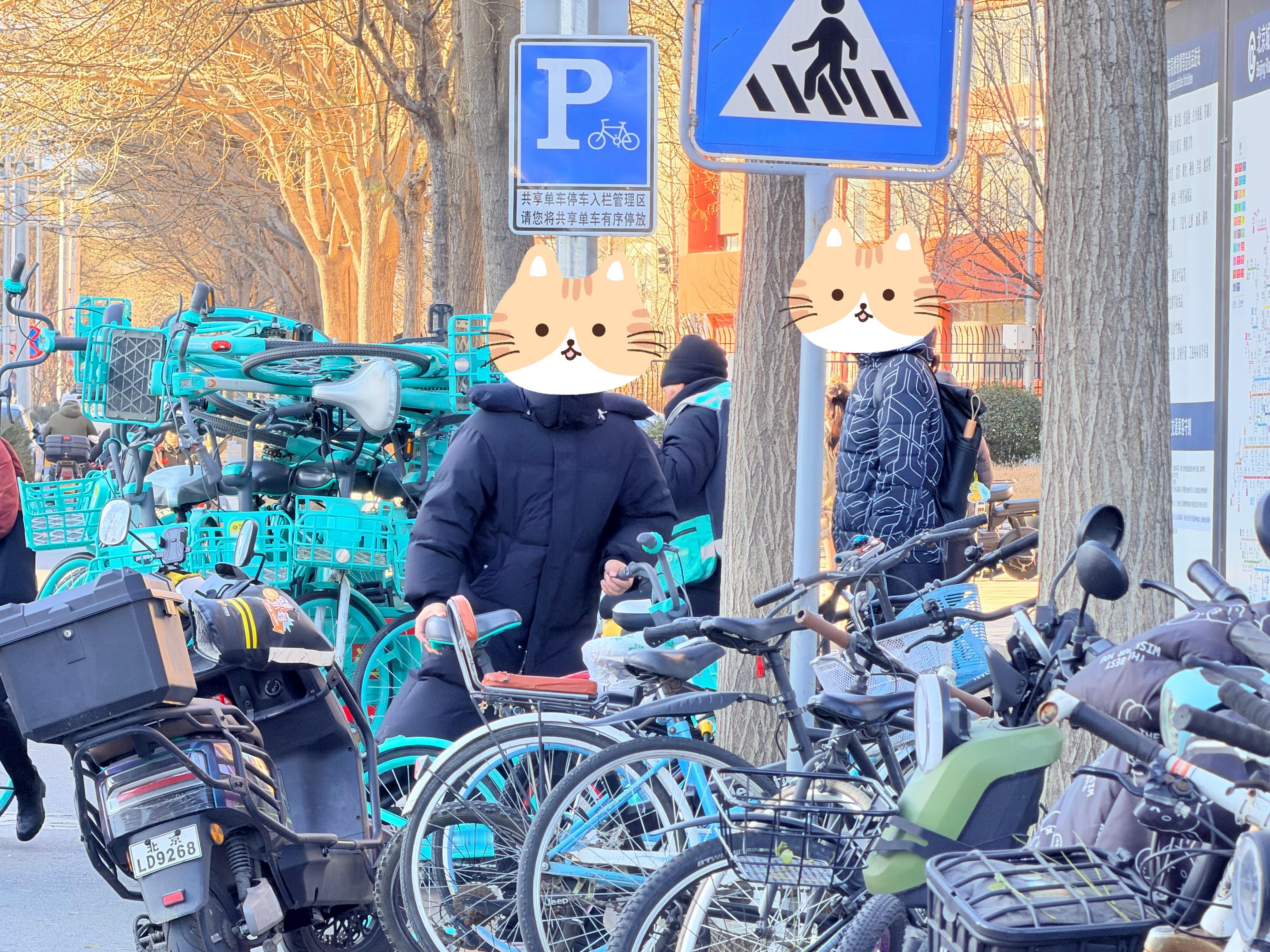 体感温度零下八度的北京,大家排队等着“领取”共享单车