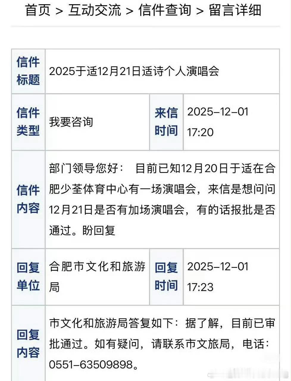 于适12.20号合肥演唱会门票秒售罄后,21号加场啊,这回复是已审批通过