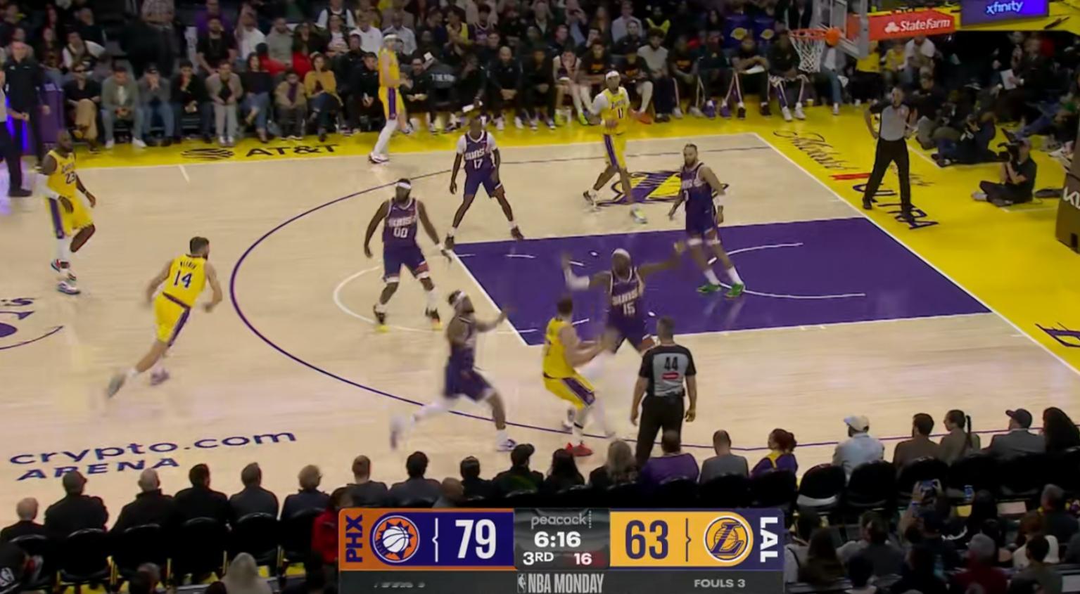 湖人一球防不住对面,目前落后21分!太阳vs湖人洛杉矶湖人