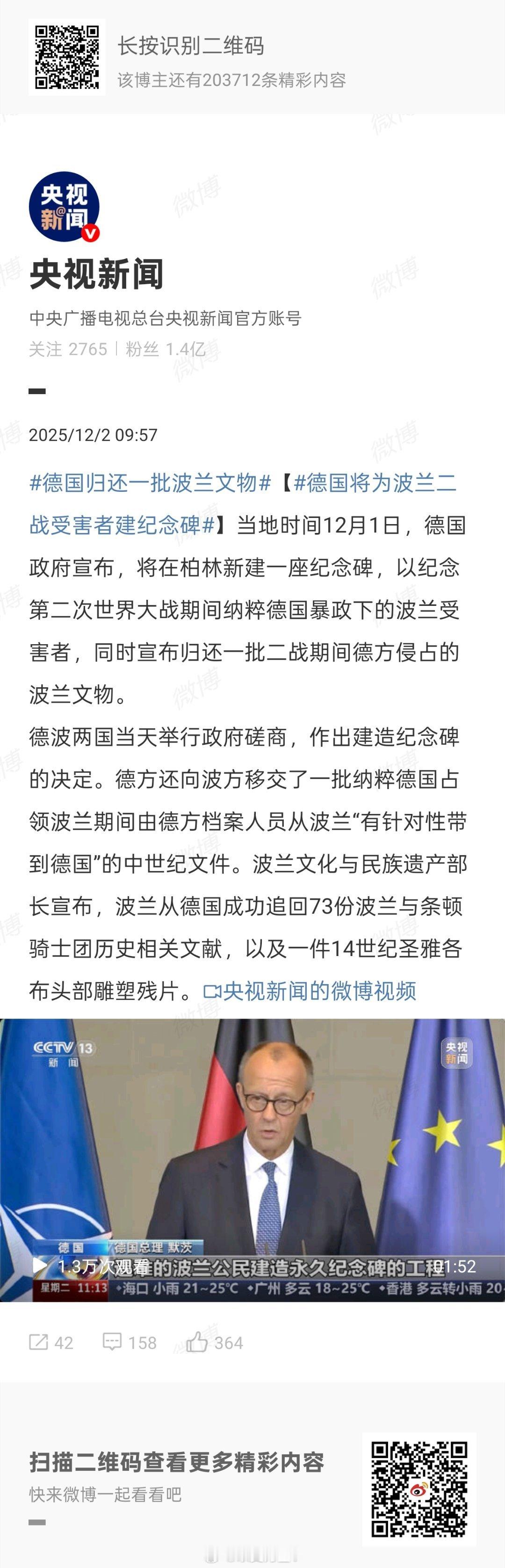 德国归还一批波兰文物德国将为波兰二战受害者建纪念碑看看德国,再对比一下东方的二战策源地,法西斯军国主义的日本。这就是彻底清算战争罪行和没有清算战争罪行的区别。我们只有彻底清算了日本二战时期的罪行,才能让日本返还抢走中国的文物,给中国各地的遇难者建立纪念碑。热点观点全网热点共创计划